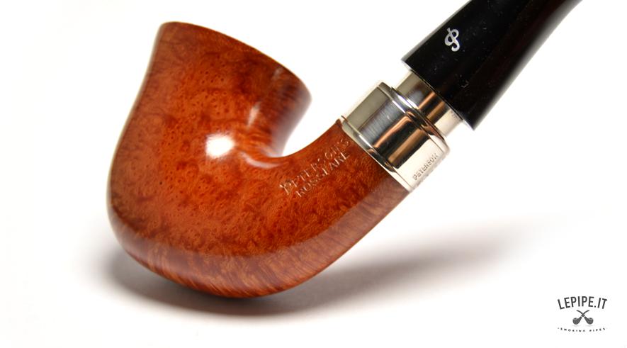 Pipa Peterson - Rosslare n. 5 05FT - Finitura liscia naturale con vera in argento Bocchino in metacrilato Senza filtro Liscia Con elaborazione in argento Diametro Interno: 20 mm. Diametro Esterno: 37 mm. Lunghezza: 143 mm. Altezza: 49 mm. Peso: 60 gr. Profondità: 39 mm.