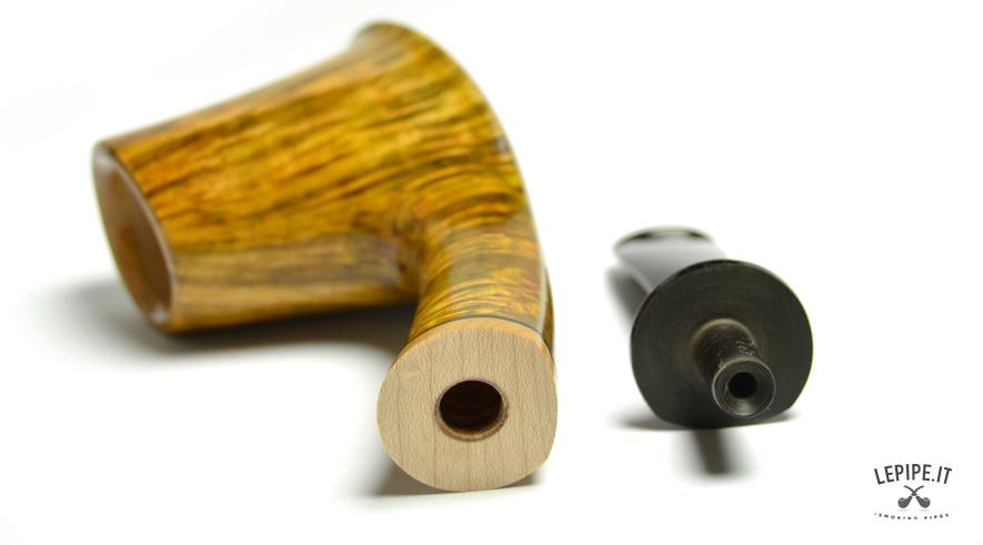 Pipa Vitale - n. 43  Bocchino in ebanite Senza filtro Liscia Con altra elaborazione Diametro Interno: 20 mm. Diametro Esterno: 38 mm. Lunghezza: 148 mm. Altezza: 54 mm. Peso: 51 gr. Profondità: 43 mm.