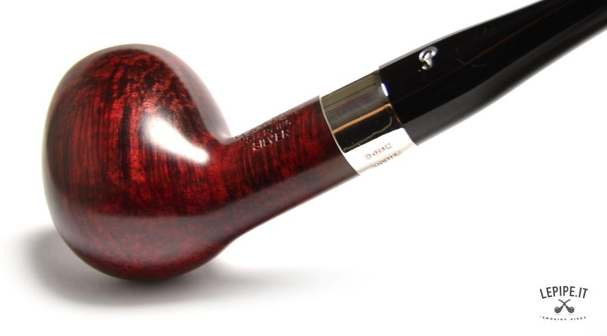 Pipa Peterson - Sterling Silver n. 6 87 - Finitura raffinata e morbida con larghe vere in argento Bocchino in ebanite Senza filtro Liscia Con elaborazione in argento Diametro Interno: 19 mm. Diametro Esterno: 38 mm. Lunghezza: 149 mm. Altezza: 42 mm. Peso: 46 gr. Profondità: 37 mm.