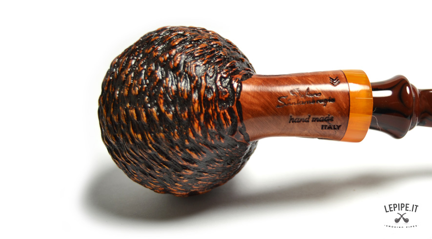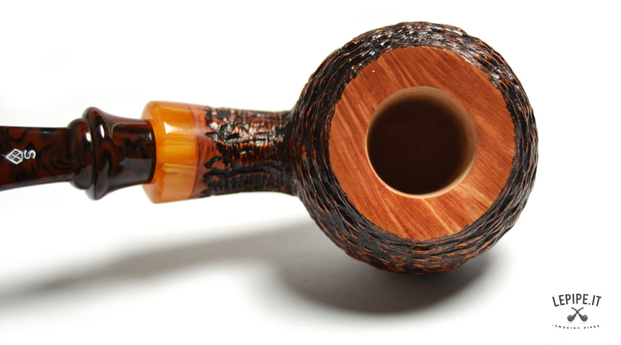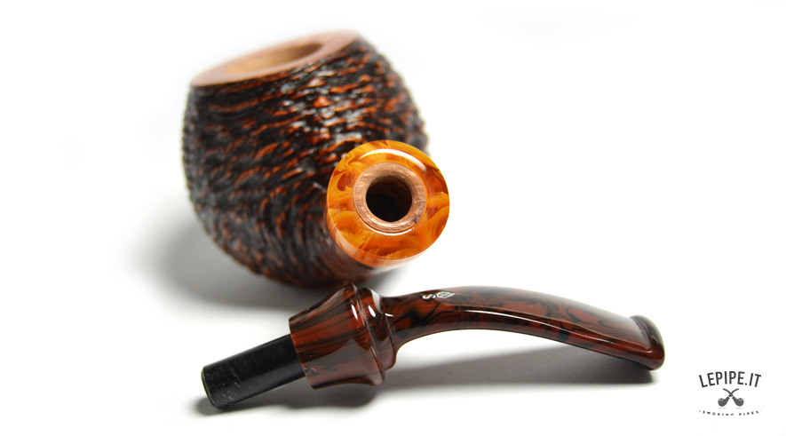 Pipa Santambrogio - Rusticata n. 139 Grande Bocchino in metacrilato Senza filtro Rusticata Con altra elaborazione Diametro Interno: 20 mm. Diametro Esterno: 50 mm. Lunghezza: 140 mm. Altezza: 45 mm. Peso: 66 gr. Profondità: 34 mm.