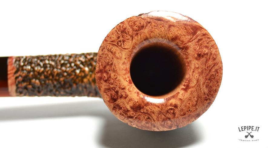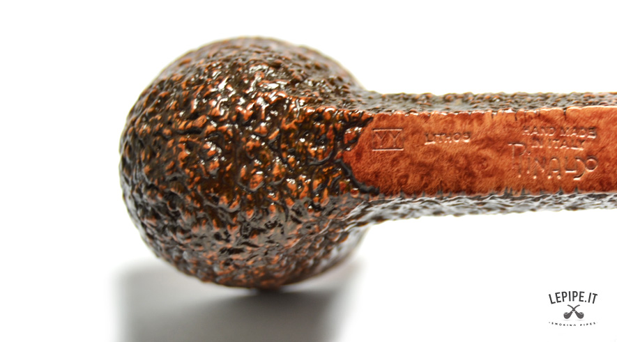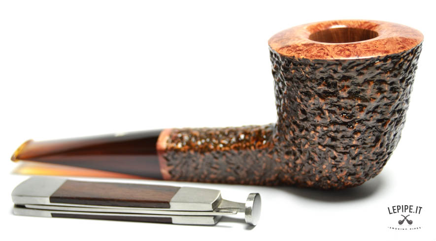 Pipa Rinaldo - Lithos n. 22 YY Bocchino in metacrilato Senza filtro Rusticata Senza elaborazione Diametro Interno: 21 mm. Diametro Esterno: 47 mm. Lunghezza: 155 mm. Altezza: 56 mm. Peso: 69 gr. Profondità: 45 mm.