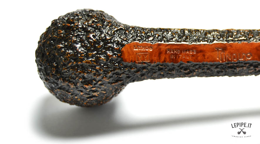 Pipa Rinaldo - Lithos n. 23 YY Bocchino in metacrilato Senza filtro Rusticata Senza elaborazione Diametro Interno: 21 mm. Diametro Esterno: 38 mm. Lunghezza: 153 mm. Altezza: 49 mm. Peso: 48 gr. Profondità: 42 mm.