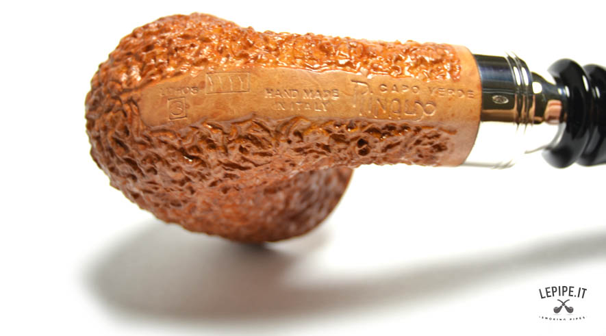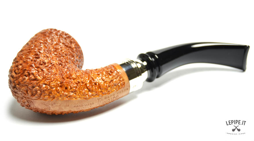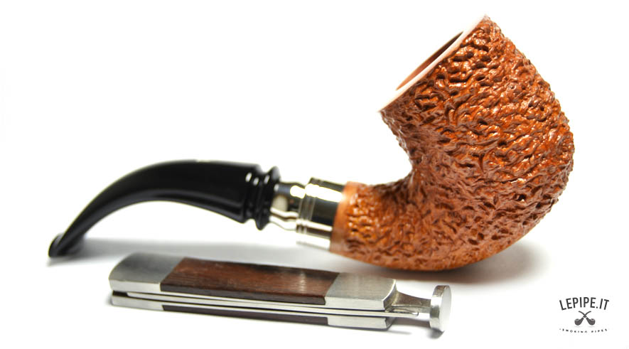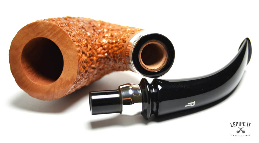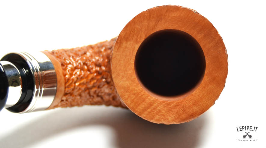 Pipa Rinaldo - Lithos n. 44 YYYY 3 Bocchino in metacrilato Senza filtro Rusticata Con elaborazione in argento Diametro Interno: 21 mm. Diametro Esterno: 36 mm. Lunghezza: 144 mm. Altezza: 46 mm. Peso: 59 gr. Profondità: 40 mm.