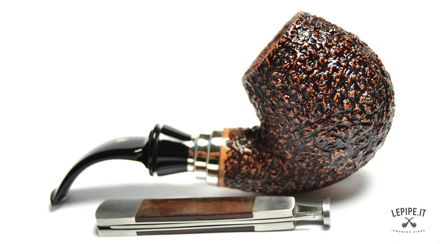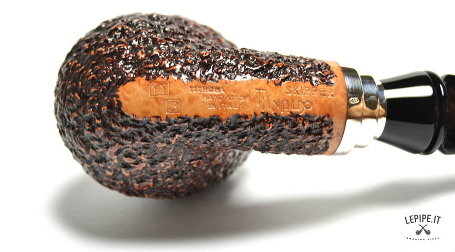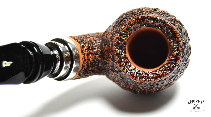 Pipa Rinaldo - Lithos n. 37 YY 3 Bocchino in metacrilato Senza filtro Rusticata Con elaborazione in argento Diametro Interno: 21 mm. Diametro Esterno: 48 mm. Lunghezza: 142 mm. Altezza: 54 mm. Peso: 88 gr. Profondità: 46 mm.