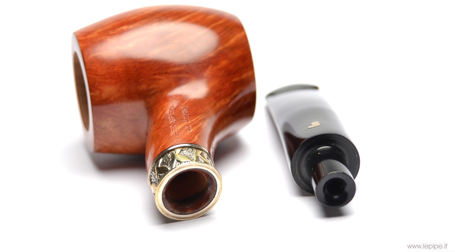 Pipa Ser Jacopo - Magritte 17  Bocchino in metacrilato Senza filtro Liscia Con elaborazione in argento Diametro Interno: 22 mm. Diametro Esterno: 41 mm. Lunghezza: 135 mm. Altezza: 46 mm. Peso: 55 gr. Profondità: 0 mm.