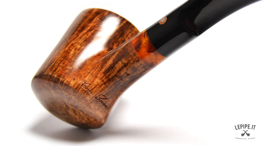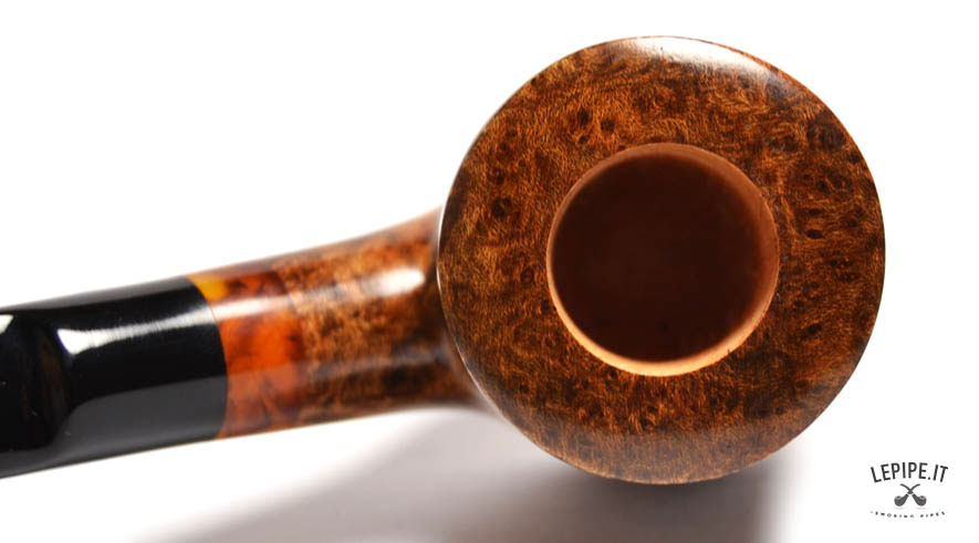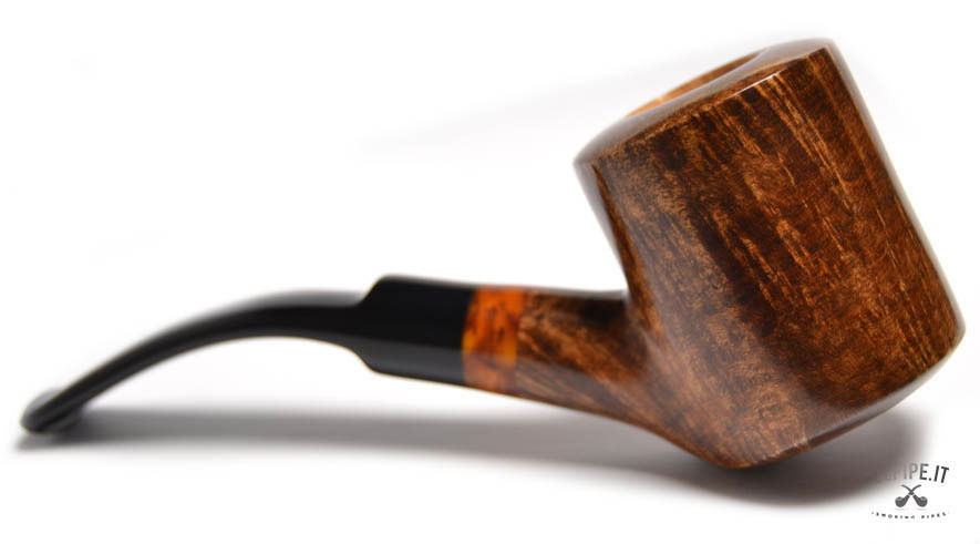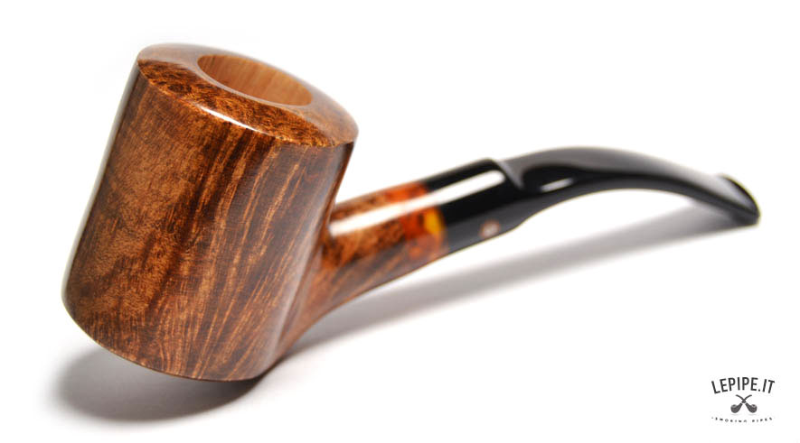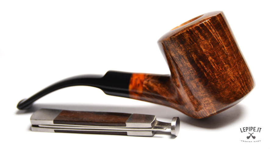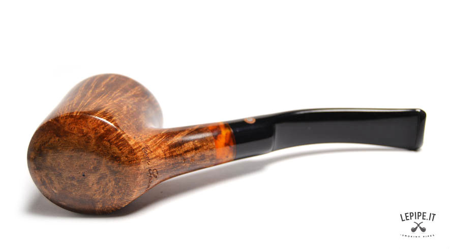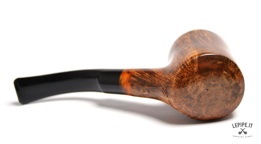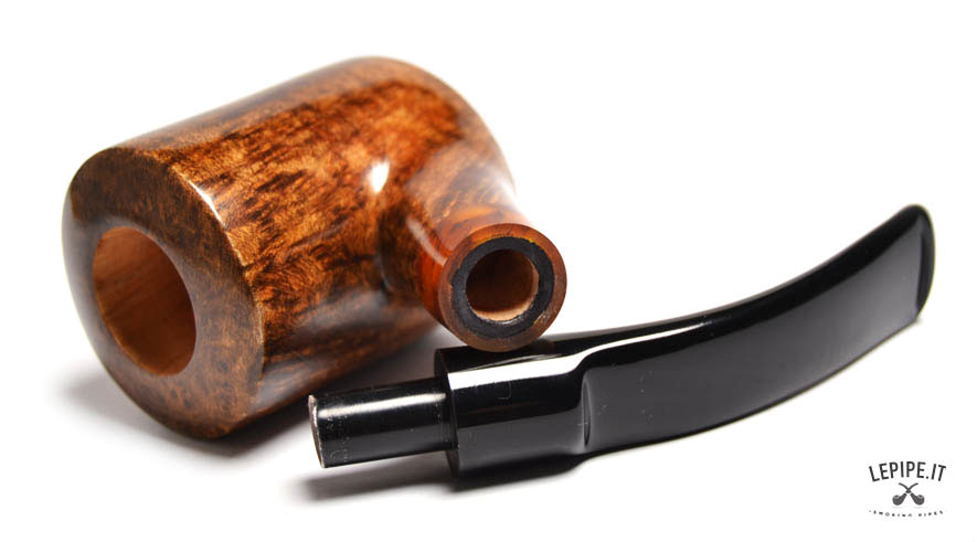 Pipa Spanu - FA n. 44  Bocchino in metacrilato Senza filtro Liscia Con altra elaborazione Diametro Interno: 20 mm. Diametro Esterno: 41 mm. Lunghezza: 144 mm. Altezza: 51 mm. Peso: 57 gr. Profondità: 39 mm.
