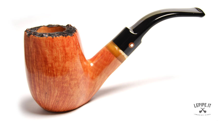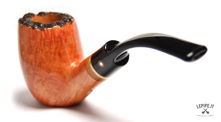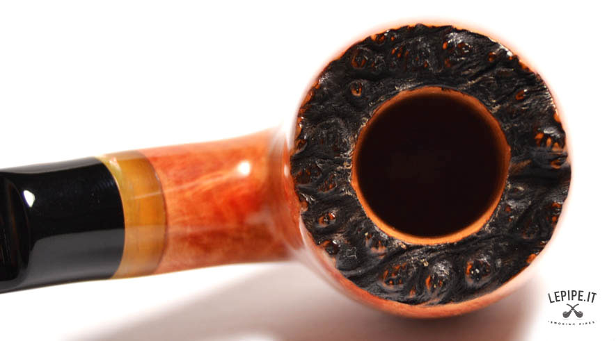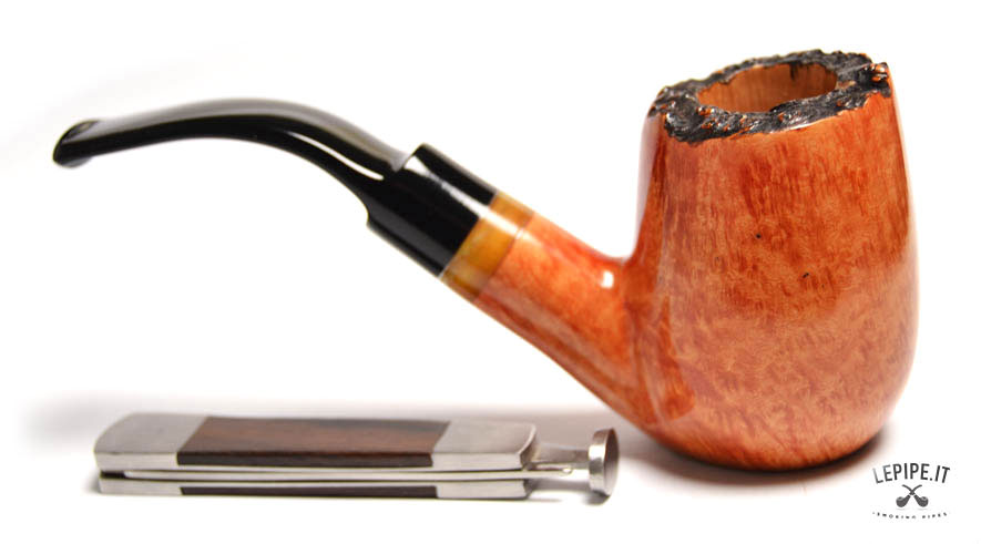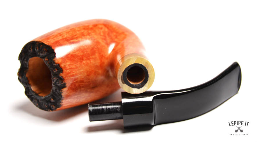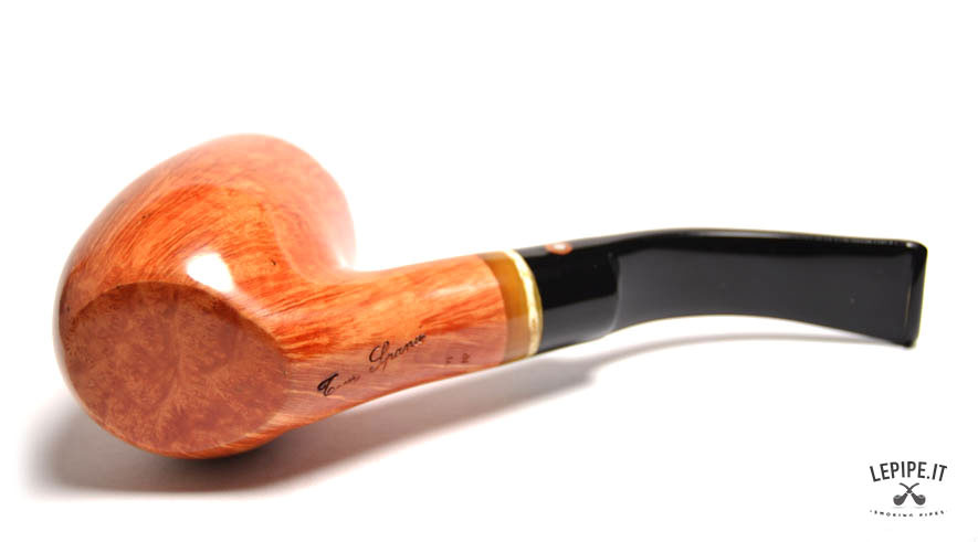 Pipa Spanu - F2 n. 42  Bocchino in metacrilato Senza filtro Liscia Con altra elaborazione Diametro Interno: 20 mm. Diametro Esterno: 44 mm. Lunghezza: 142 mm. Altezza: 58 mm. Peso: 79 gr. Profondità: 47 mm.