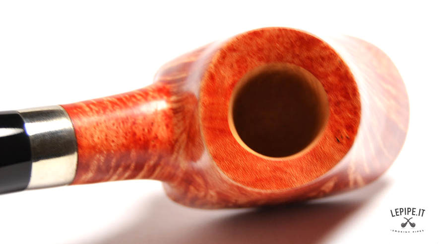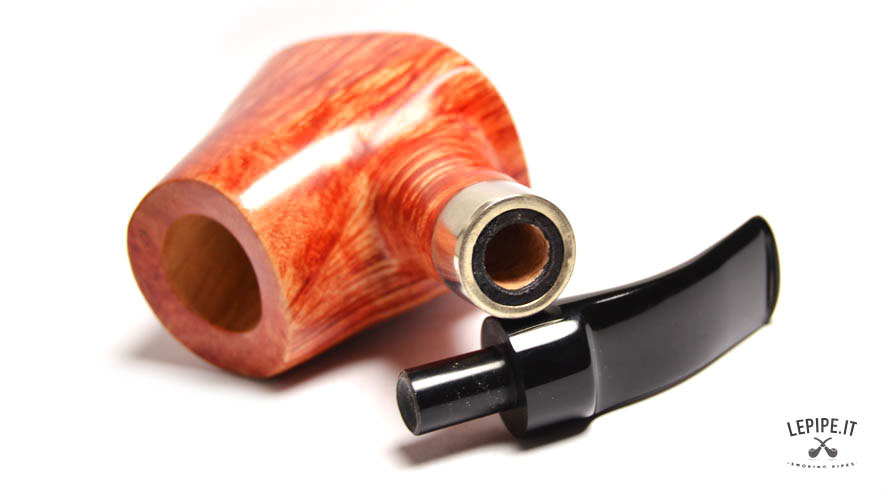 Pipa Spanu - F2 n. 45 SP1 Bocchino in metacrilato Senza filtro Liscia Con elaborazione in argento Diametro Interno: 20 mm. Diametro Esterno: 42 mm. Lunghezza: 153 mm. Altezza: 55 mm. Peso: 84 gr. Profondità: 42 mm.