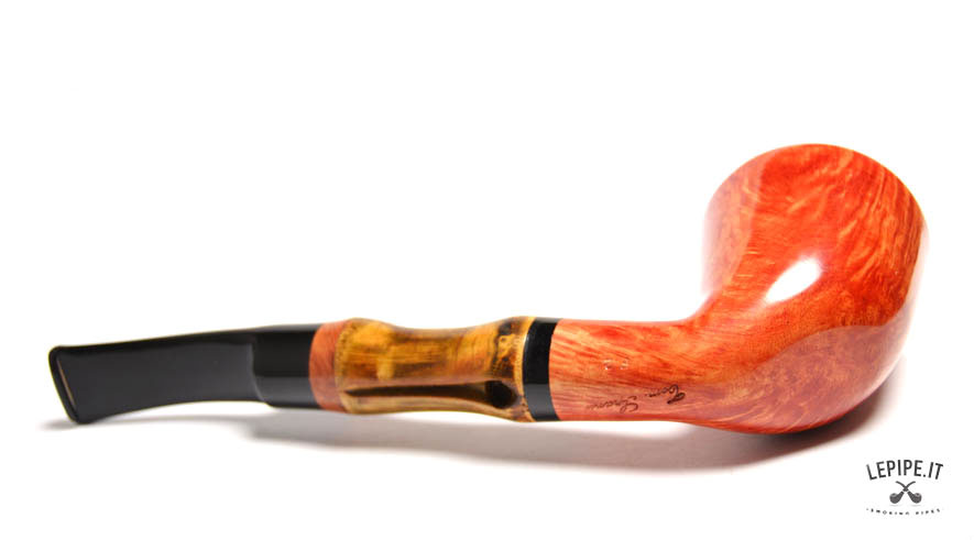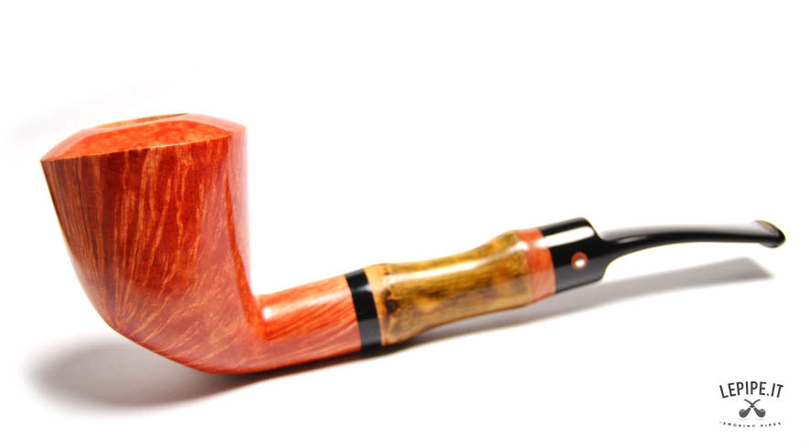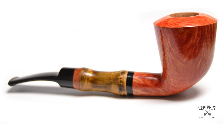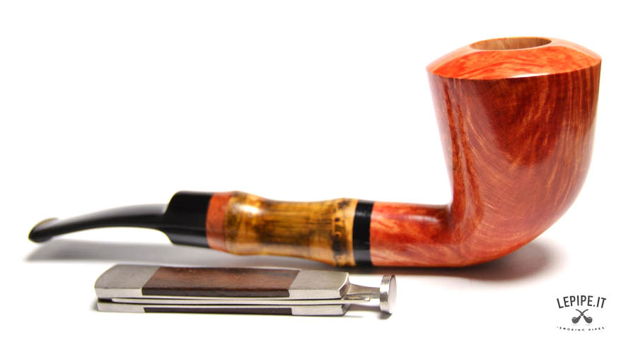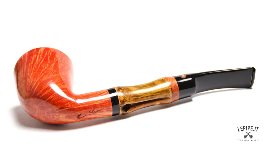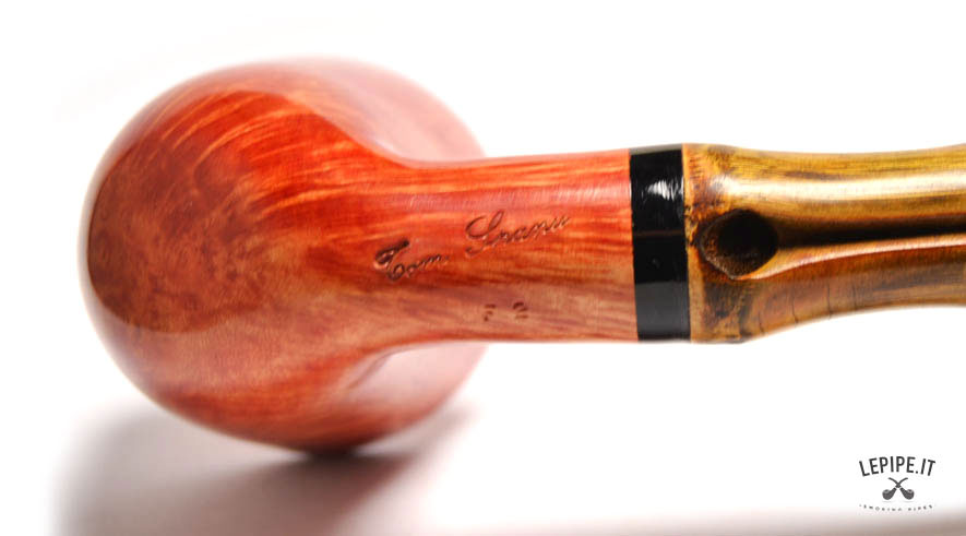 Pipa Spanu - F2 n. 47 Con elaborazione in bamboo Bocchino in metacrilato Senza filtro Liscia Con elaborazione in bamboo Diametro Interno: 21 mm. Diametro Esterno: 47 mm. Lunghezza: 182 mm. Altezza: 63 mm. Peso: 78 gr. Profondità: 43 mm.