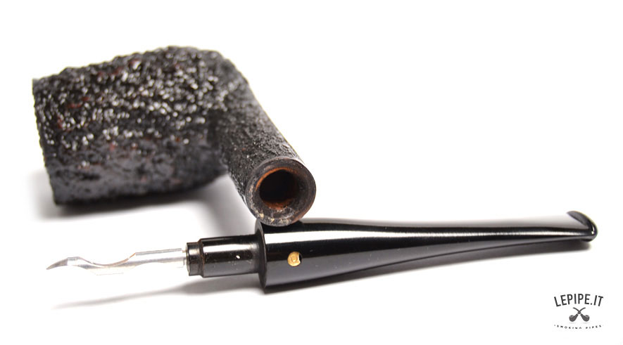 Pipa Gasparini - Rock n. 10  Bocchino in ebanite Senza filtro Rusticata Senza elaborazione Diametro Interno: 21 mm. Diametro Esterno: 38 mm. Lunghezza: 157 mm. Altezza: 57 mm. Peso: 52 gr. Profondità: 47 mm.