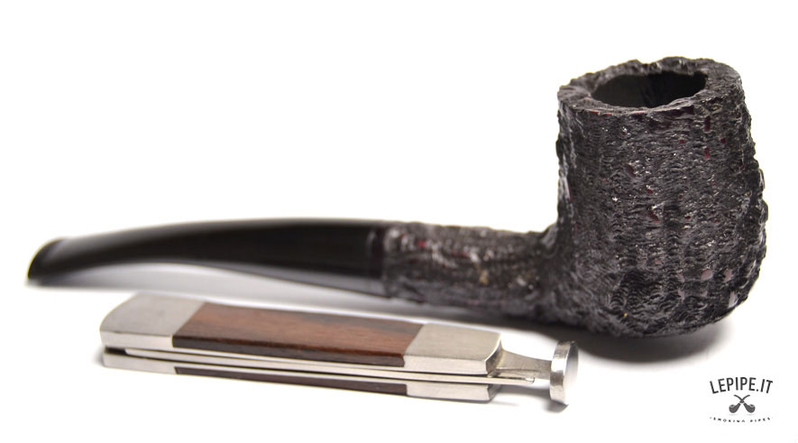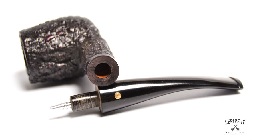 Pipa Gasparini - Rock n. 13  Bocchino in ebanite Senza filtro Rusticata Senza elaborazione Diametro Interno: 19 mm. Diametro Esterno: 36 mm. Lunghezza: 147 mm. Altezza: 48 mm. Peso: 39 gr. Profondità: 37 mm.