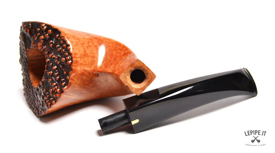 Pipa Amorelli - 4 stelle n. 18  Bocchino in metacrilato Senza filtro Liscia Senza elaborazione Diametro Interno: 22 mm. Diametro Esterno: 53 mm. Lunghezza: 153 mm. Altezza: 61 mm. Peso: 77 gr. Profondità: 45 mm.