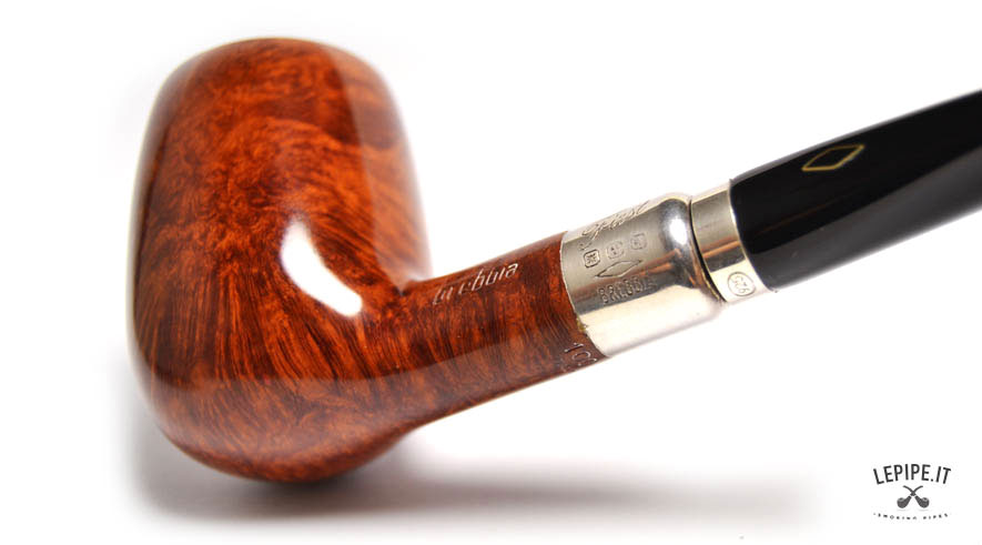 Pipa Brebbia - First Long n. 3 Selected 100 - Con doppio bocchino Bocchino in metacrilato Con sede per filtro da 9 mm. Liscia Con elaborazione in argento Diametro Interno: 21 mm. Diametro Esterno: 42 mm. Lunghezza: 153 mm. Altezza: 55 mm. Peso: 67 gr. Profondità: 46 mm.