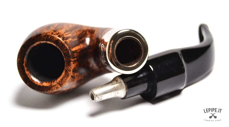 Perchè System? Bocchino in ebanite Senza filtro Liscia Con elaborazione in argento Diametro Interno: 17 mm. Diametro Esterno: 33 mm. Lunghezza: 134 mm. Altezza: 41 mm. Peso: 44 gr. Profondità: 32 mm.">