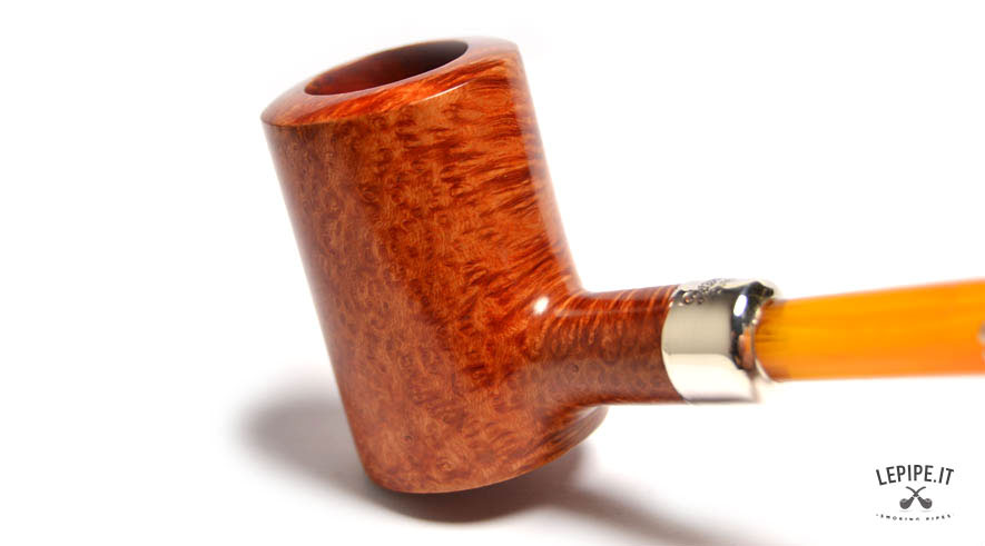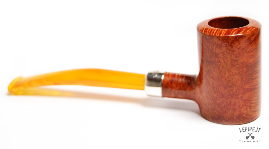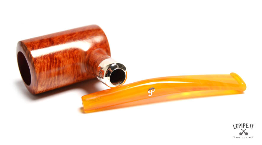 Pipa Peterson - Kapp Royal Silver n. 14  Bocchino in metacrilato Senza filtro Liscia Con elaborazione in argento Diametro Interno: 18 mm. Diametro Esterno: 29 mm. Lunghezza: 133 mm. Altezza: 45 mm. Peso: 30 gr. Profondità: 35 mm.