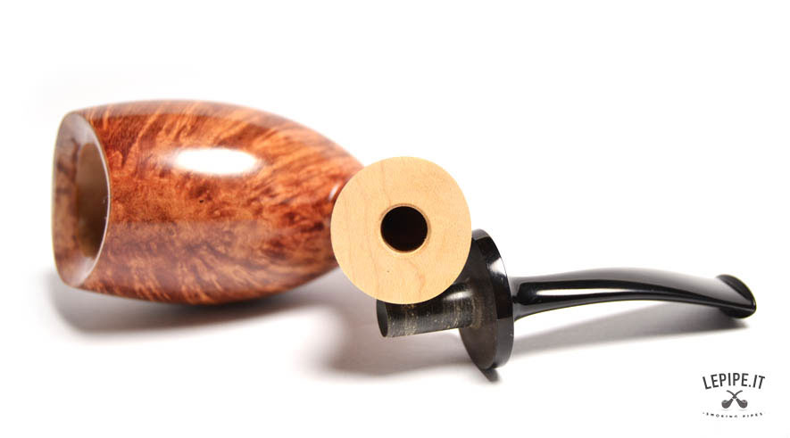 Pipa Vitale - n. 58  Bocchino in ebanite Senza filtro Liscia Senza elaborazione Diametro Interno: 21 mm. Diametro Esterno: 39 mm. Lunghezza: 128 mm. Altezza: 56 mm. Peso: 48 gr. Profondità: 45 mm.
