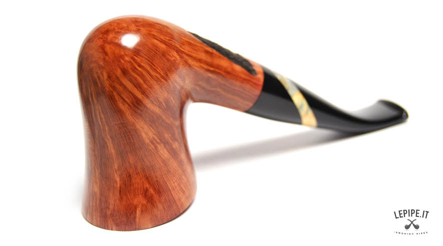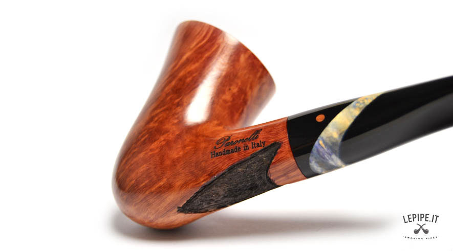 Pipa Paronelli - Semi rusticata n. 10 Con inserto Bocchino in metacrilato Senza filtro Semi rusticata Con altra elaborazione Diametro Interno: 21 mm. Diametro Esterno: 36 mm. Lunghezza: 131 mm. Altezza: 61 mm. Peso: 55 gr. Profondità: 42 mm.