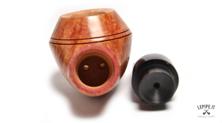 Pipa Paronelli - Reverse n. 1 Reverse calabash Bocchino in metacrilato Calabash reverse system Liscia Senza elaborazione Diametro Interno: 20 mm. Diametro Esterno: 47 mm. Lunghezza: 114 mm. Altezza: 41 mm. Peso: 50 gr. Profondità: 32 mm.