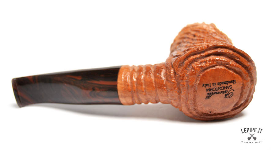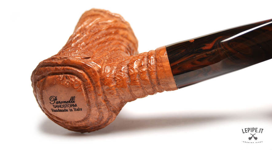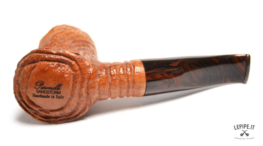 Pipa Paronelli - Sandstorm n. 6  Bocchino in metacrilato Senza filtro Rusticata Senza elaborazione Diametro Interno: 21 mm. Diametro Esterno: 42 mm. Lunghezza: 148 mm. Altezza: 63 mm. Peso: 87 gr. Profondità: 53 mm.