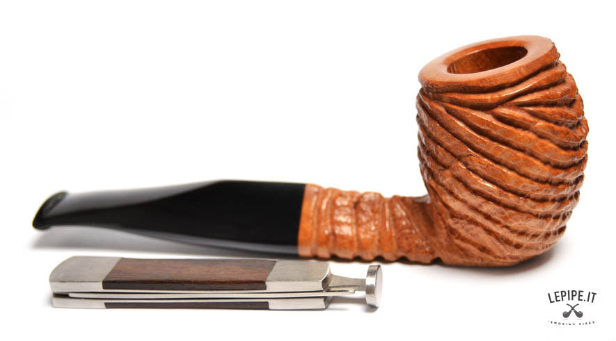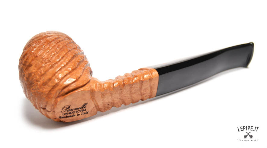 Pipa Paronelli - Sandstorm n. 7  Bocchino in metacrilato Senza filtro Rusticata Senza elaborazione Diametro Interno: 20 mm. Diametro Esterno: 41 mm. Lunghezza: 153 mm. Altezza: 53 mm. Peso: 62 gr. Profondità: 43 mm.