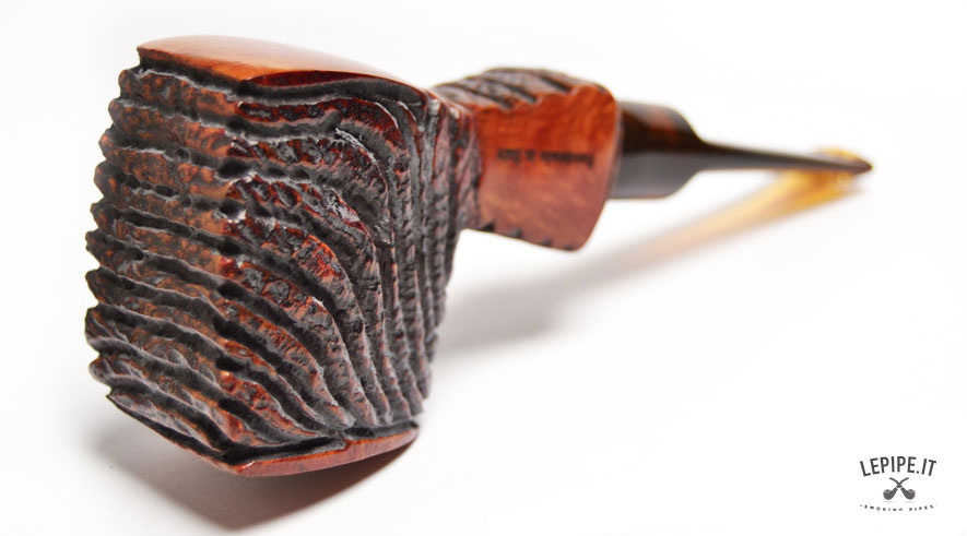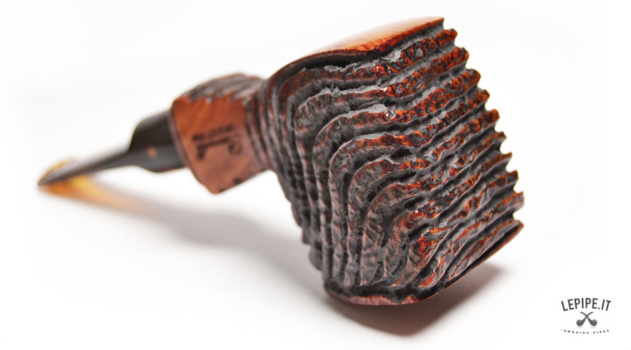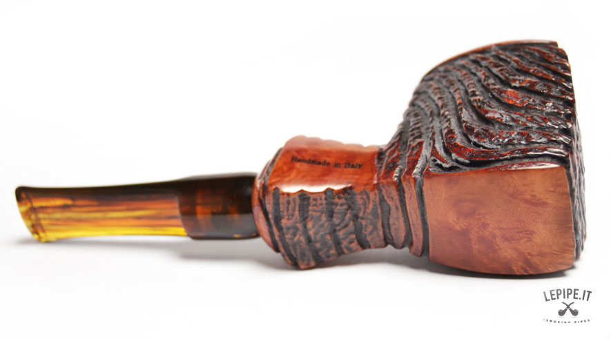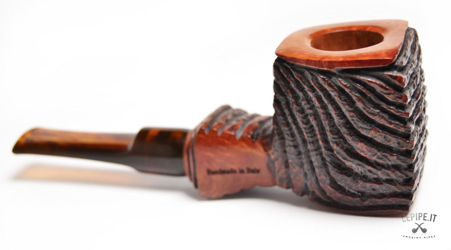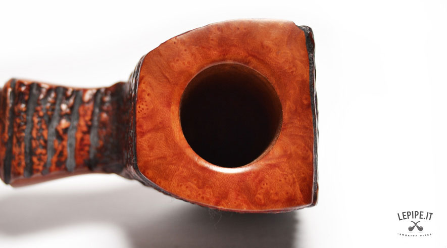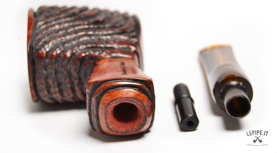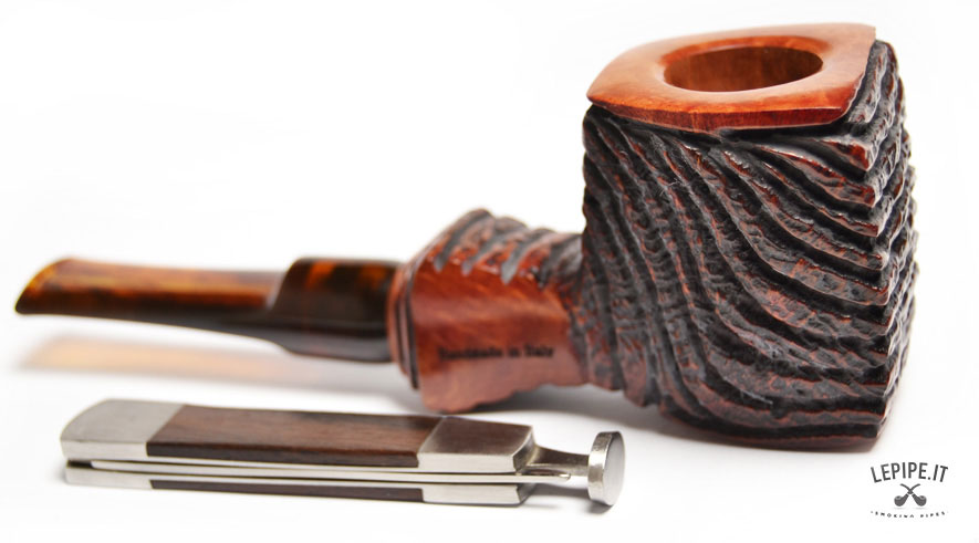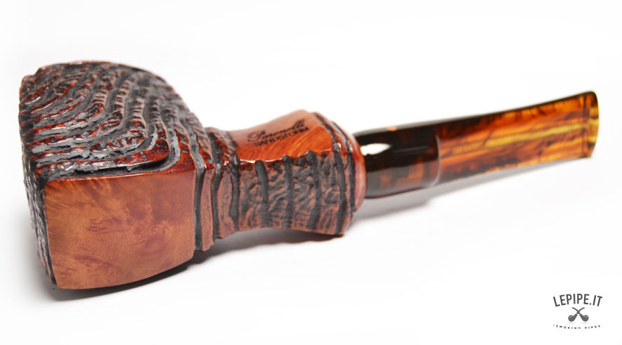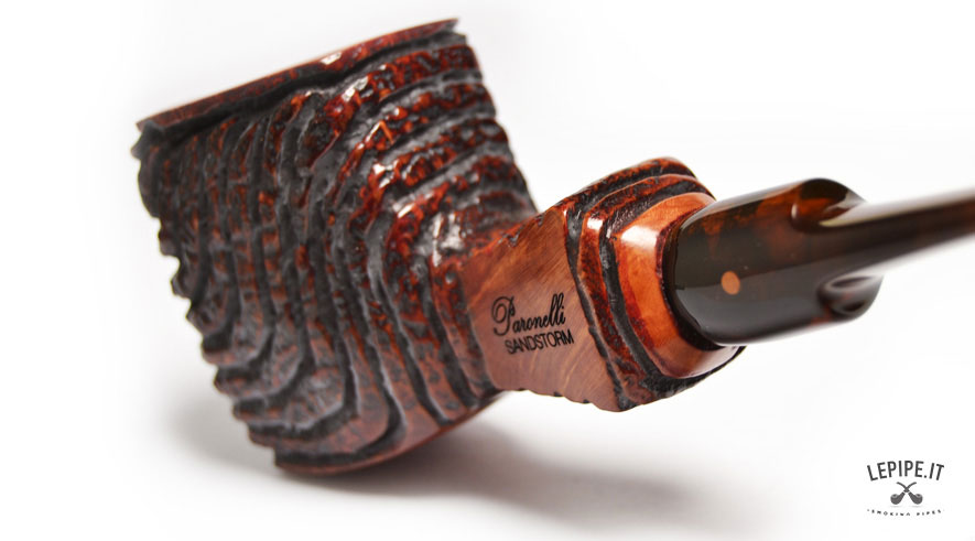 Pipa Paronelli - Sandstorm n. 9  Bocchino in metacrilato Con sede per filtro da 9 mm. Rusticata Senza elaborazione Diametro Interno: 22 mm. Diametro Esterno: 42 mm. Lunghezza: 150 mm. Altezza: 55 mm. Peso: 72 gr. Profondità: 46 mm.
