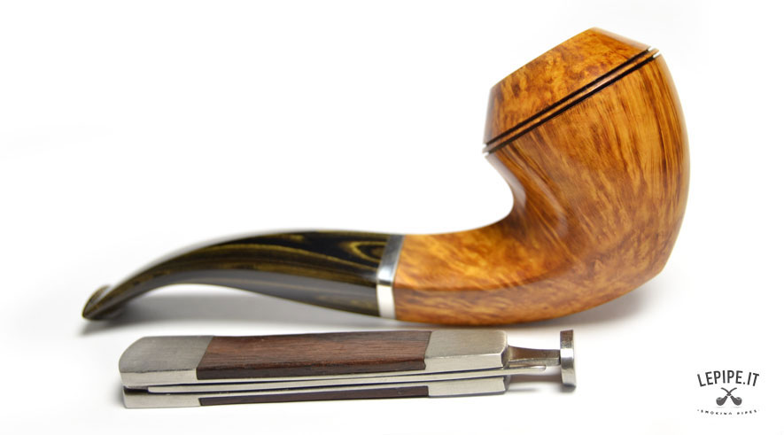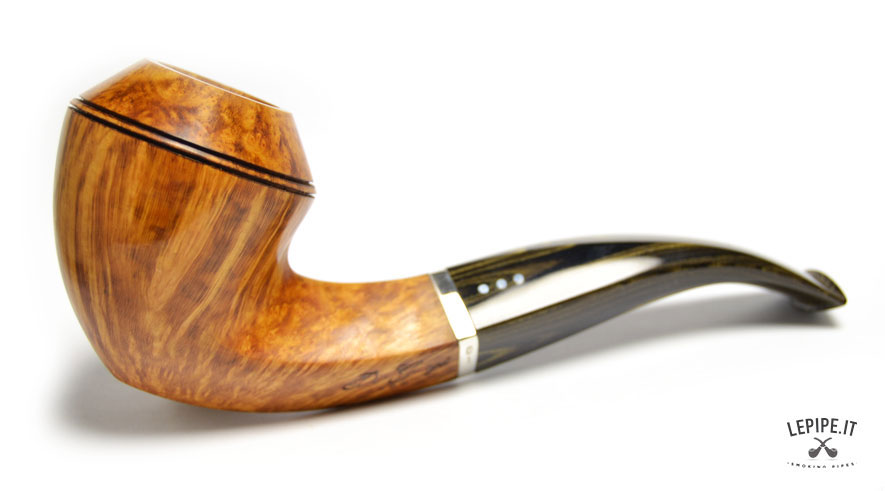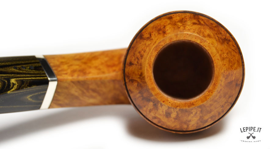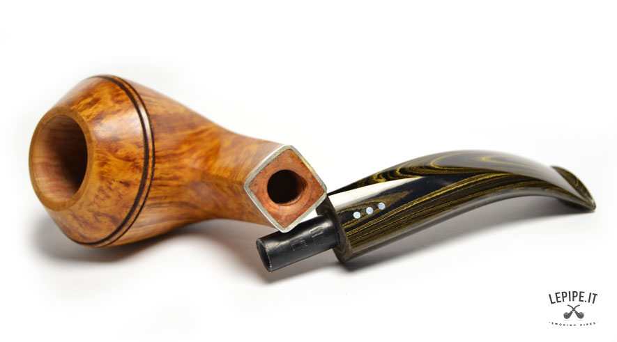Pipa Di Gangi - n. 8  Bocchino in cumberland Senza filtro Liscia Con elaborazione in argento Diametro Interno: 19 mm. Diametro Esterno: 40 mm. Lunghezza: 130 mm. Altezza: 48 mm. Peso: 42 gr. Profondità: 36 mm.