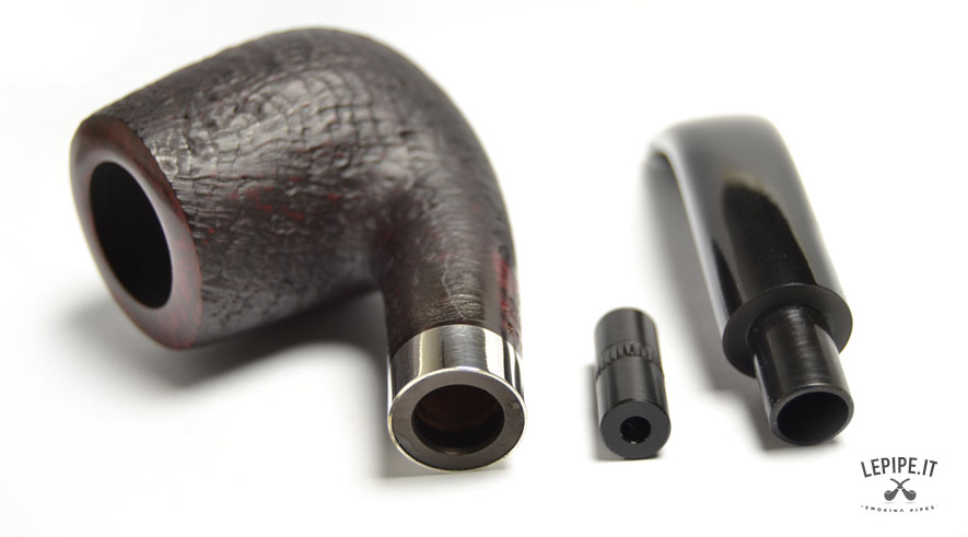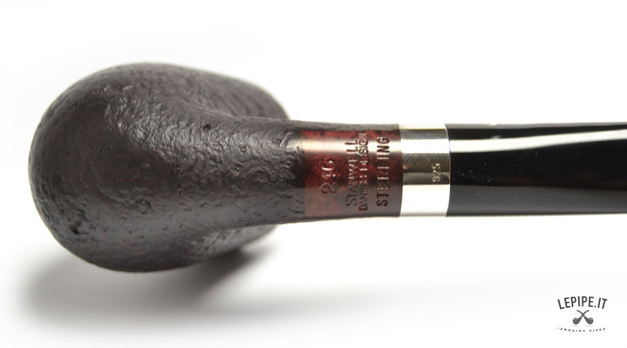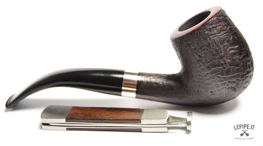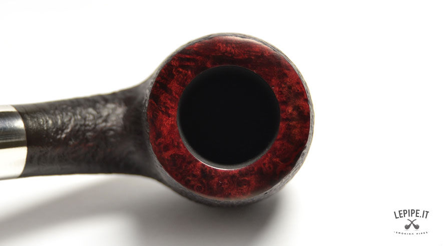 Pipa Stanwell - Sterling n. 1  Bocchino in metacrilato Con sede per filtro da 9 mm. Sabbiata Con elaborazione in argento Diametro Interno: 20 mm. Diametro Esterno: 40 mm. Lunghezza: 153 mm. Altezza: 51 mm. Peso: 56 gr. Profondità: 45 mm.