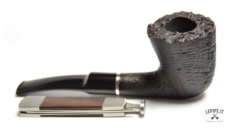 Pipa Stanwell - Sterling n. 5  Bocchino in metacrilato Senza filtro Sabbiata Con elaborazione in argento Diametro Interno: 19 mm. Diametro Esterno: 44 mm. Lunghezza: 150 mm. Altezza: 52 mm. Peso: 57 gr. Profondità: 37 mm.
