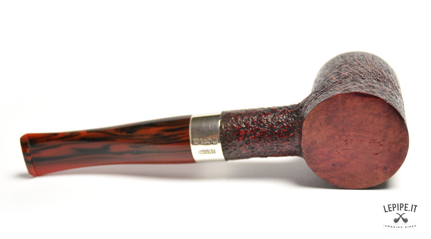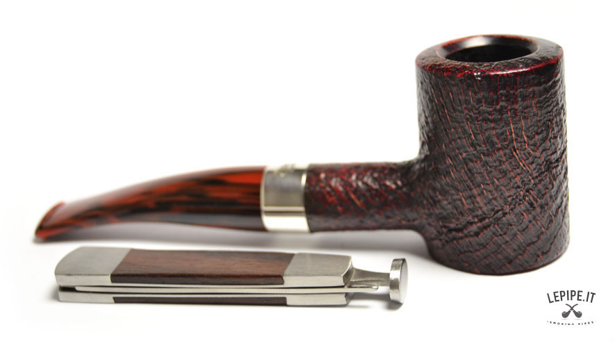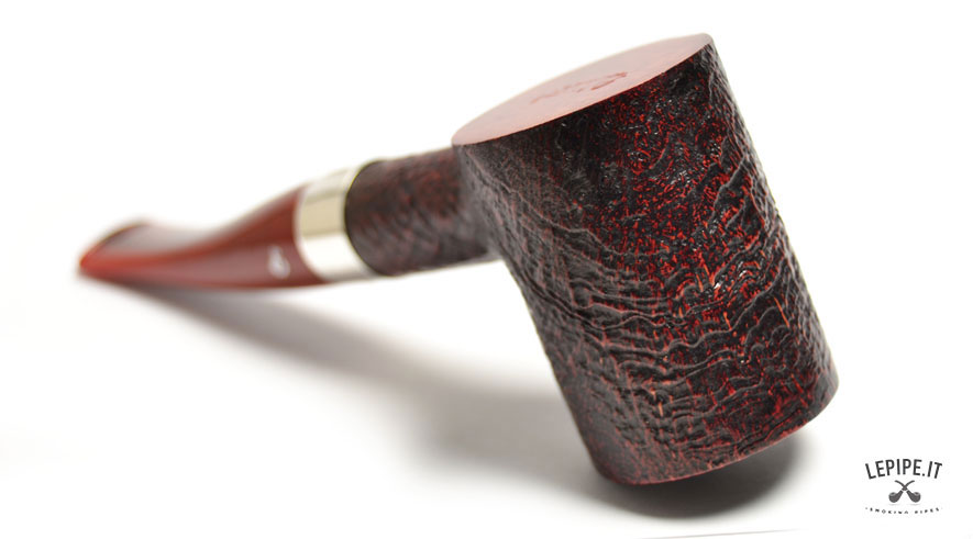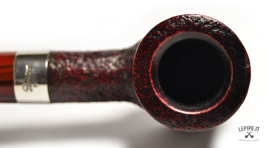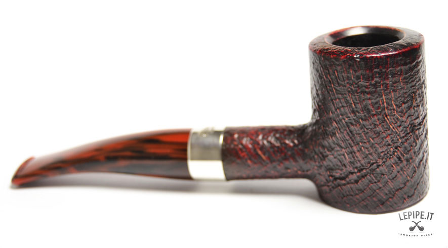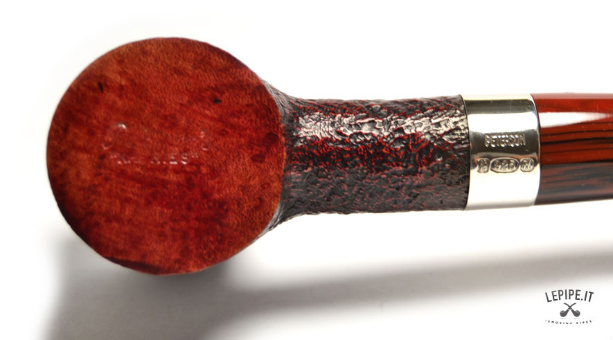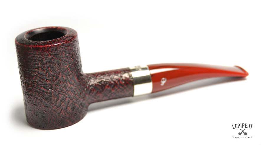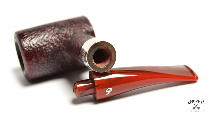 Pipa Peterson - Kapries Army n. 21  Bocchino in metacrilato Senza filtro Sabbiata Con elaborazione in argento Diametro Interno: 20 mm. Diametro Esterno: 35 mm. Lunghezza: 144 mm. Altezza: 51 mm. Peso: 50 gr. Profondità: 38 mm.