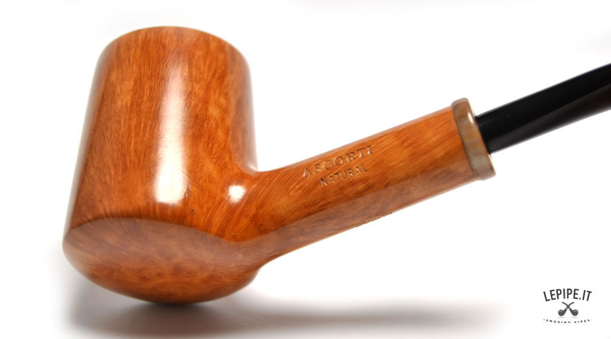 Pipa Ascorti - Naturali n. 9  Bocchino in metacrilato Senza filtro Liscia Con elaborazione in corno Diametro Interno: 20 mm. Diametro Esterno: 39 mm. Lunghezza: 131 mm. Altezza: 49 mm. Peso: 43 gr. Profondità: 43 mm.
