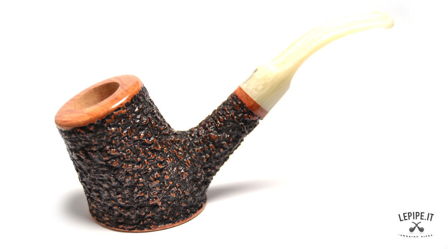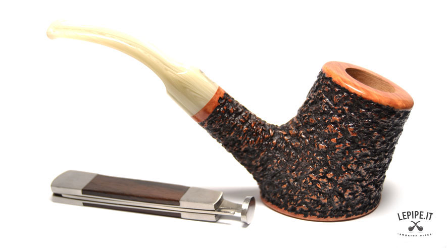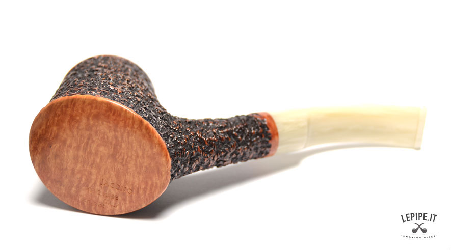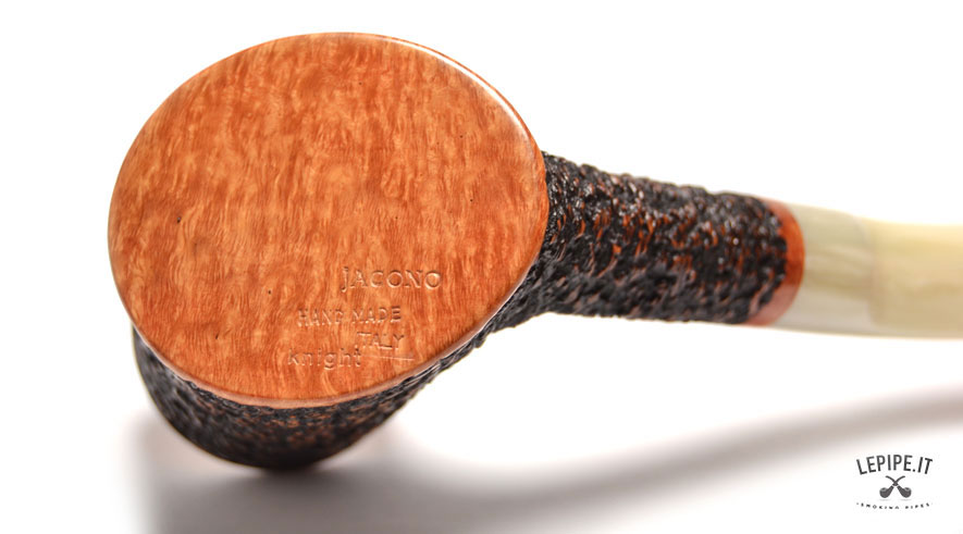 Pipa Jacono - knight n. 25  Bocchino in metacrilato Senza filtro Rusticata Senza elaborazione Diametro Interno: 20 mm. Diametro Esterno: 41 mm. Lunghezza: 145 mm. Altezza: 58 mm. Peso: 61 gr. Profondità: 43 mm.