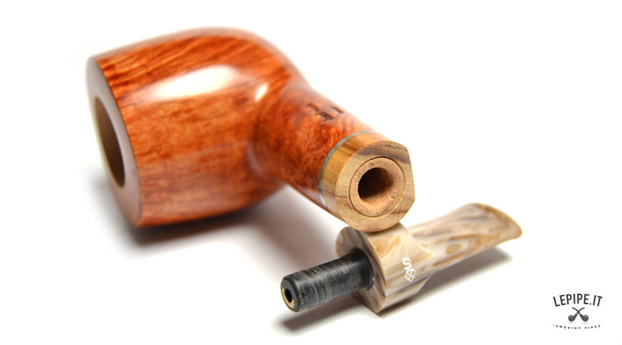 Pipa Santambrogio - FX n. 143 Grande Bocchino in metacrilato Senza filtro Liscia Con altra elaborazione Diametro Interno: 22 mm. Diametro Esterno: 46 mm. Lunghezza: 125 mm. Altezza: 49 mm. Peso: 65 gr. Profondità: 38 mm.