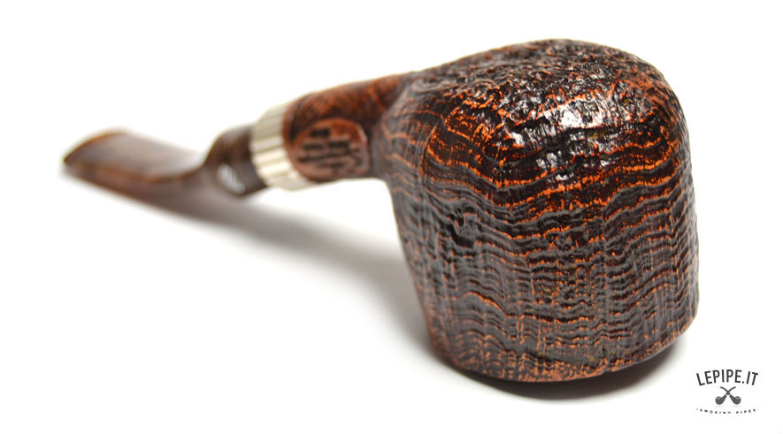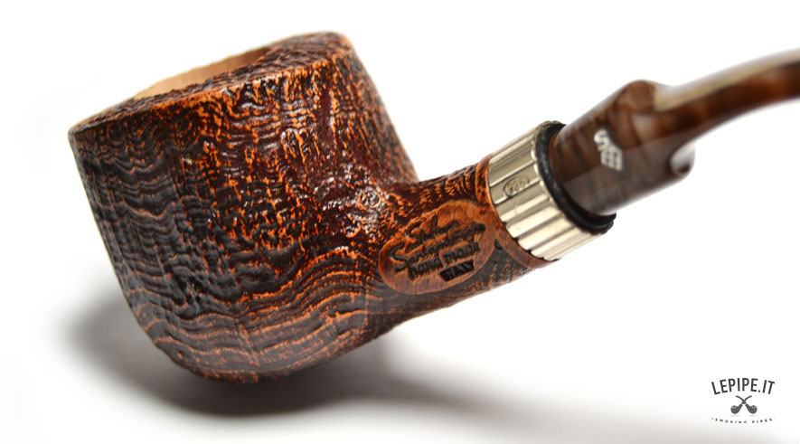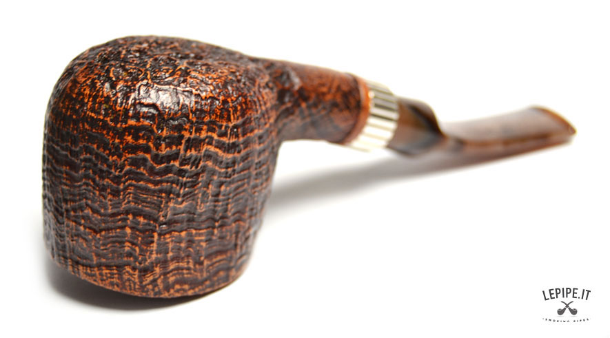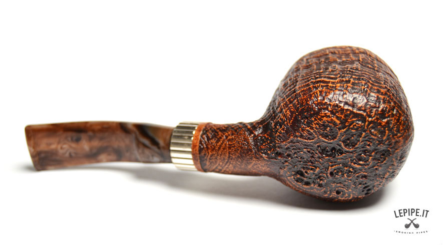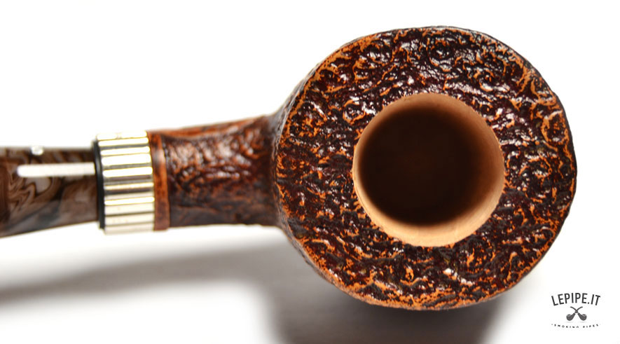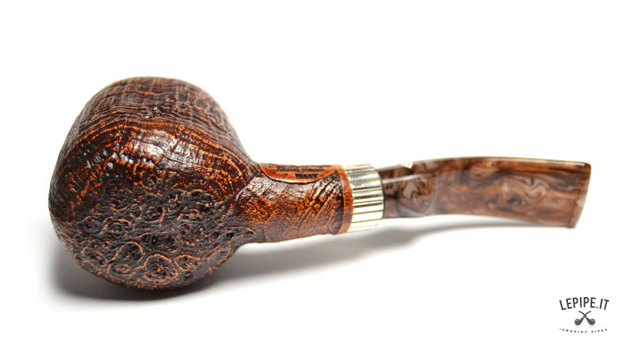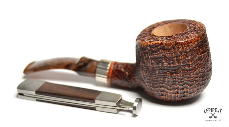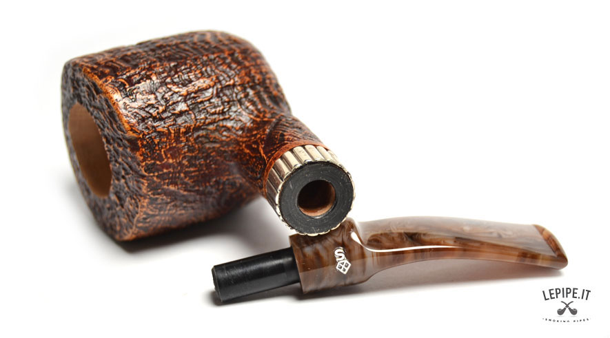 Pipa Santambrogio - Sabbiata n. 138 Grande Bocchino in metacrilato Senza filtro Sabbiata Con elaborazione in argento Diametro Interno: 21 mm. Diametro Esterno: 42 mm. Lunghezza: 136 mm. Altezza: 45 mm. Peso: 57 gr. Profondità: 37 mm.