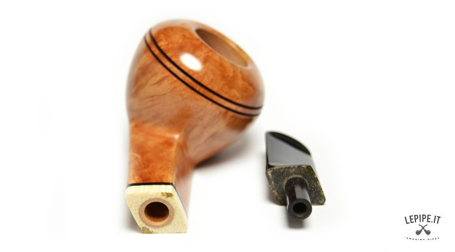 Pipa Cherepanov - n. 21  Bocchino in ebanite Senza filtro Liscia Con altra elaborazione Diametro Interno: 21 mm. Diametro Esterno: 47 mm. Lunghezza: 110 mm. Altezza: 45 mm. Peso: 43 gr. Profondità: 38 mm.