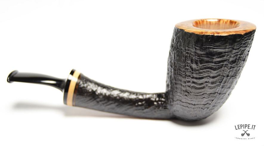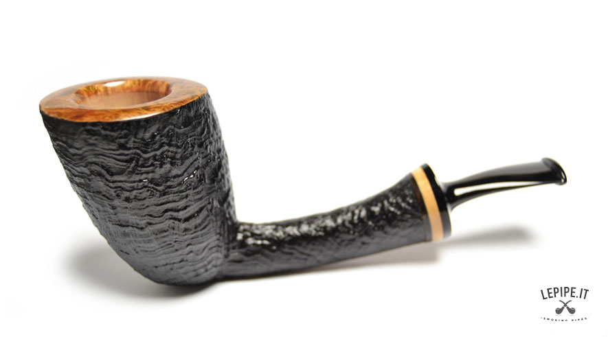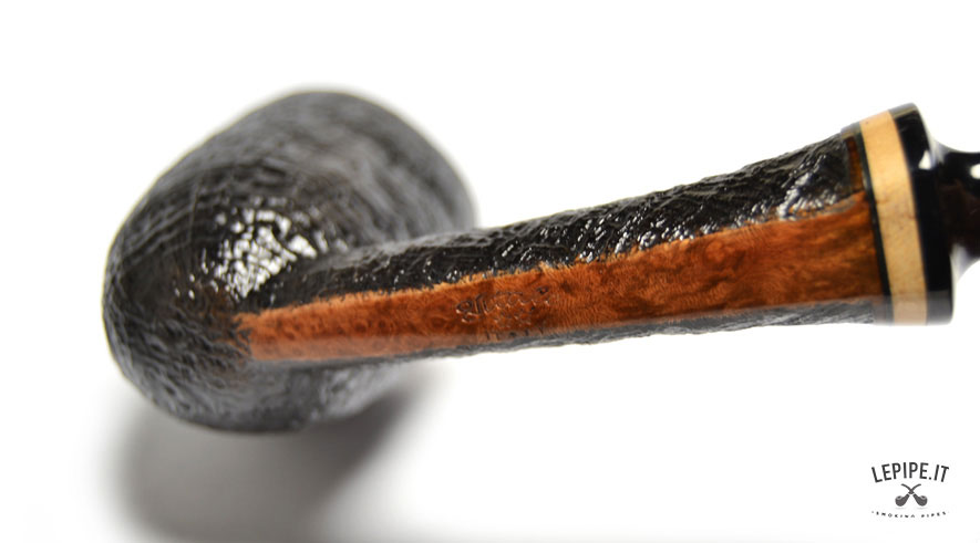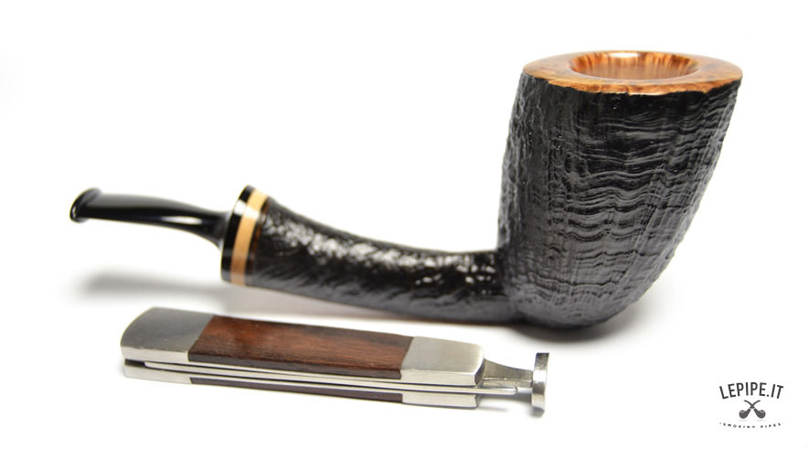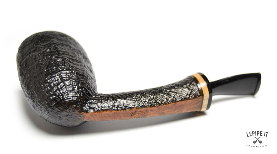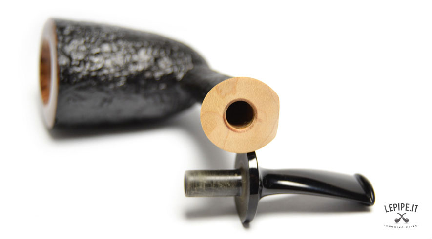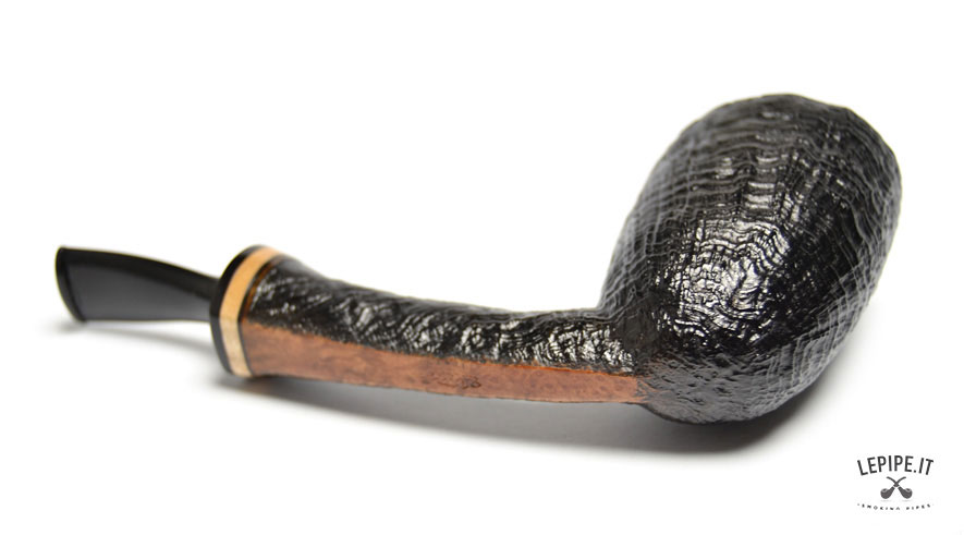 Pipa Vitale - n. 84  Bocchino in ebanite Senza filtro Sabbiata Con altra elaborazione Diametro Interno: 21 mm. Diametro Esterno: 39 mm. Lunghezza: 142 mm. Altezza: 56 mm. Peso: 43 gr. Profondità: 47 mm.