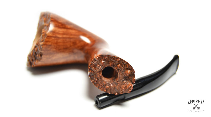 Pipa Bogni - Liscia n. 78  Bocchino in metacrilato Senza filtro Liscia Senza elaborazione Diametro Interno: 21 mm. Diametro Esterno: 43 mm. Lunghezza: 153 mm. Altezza: 51 mm. Peso: 47 gr. Profondità: 36 mm.