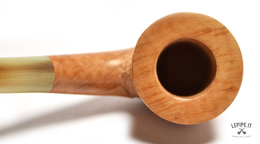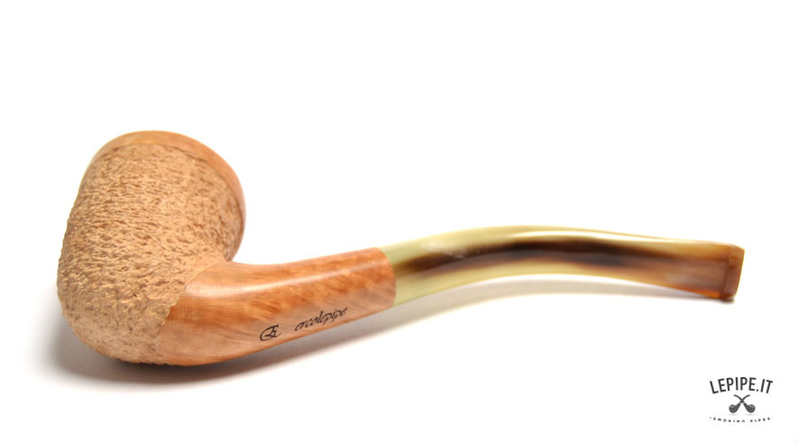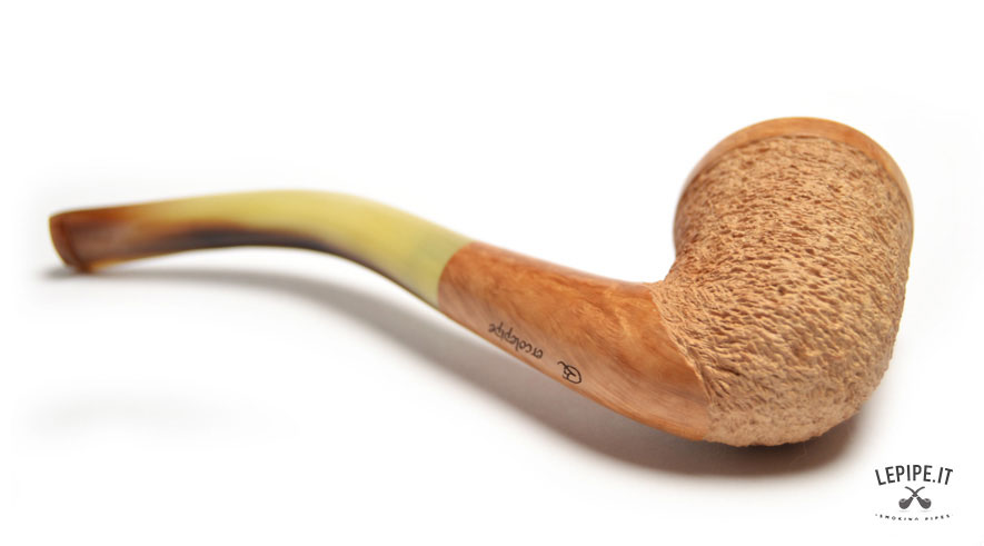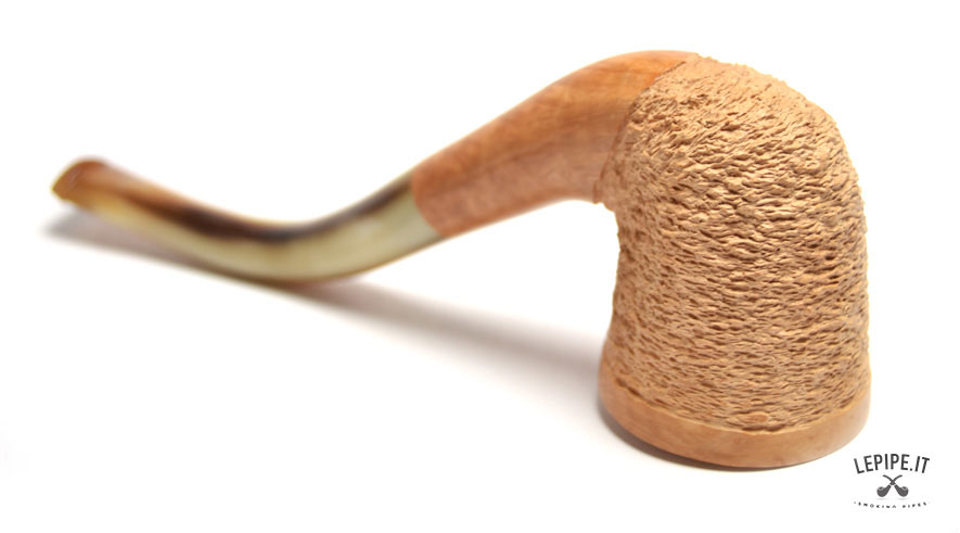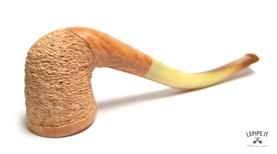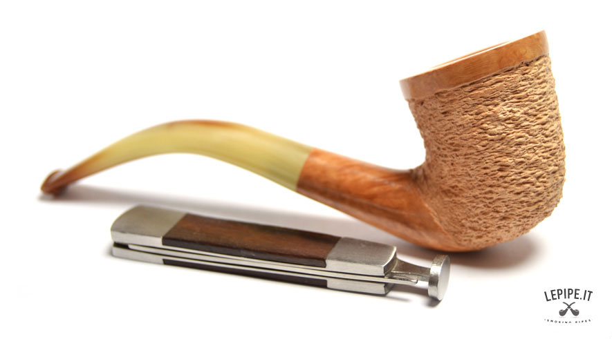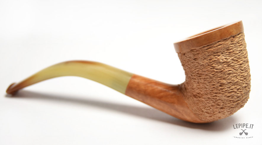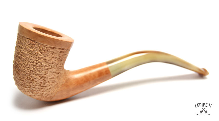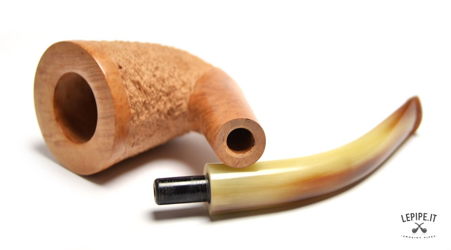 Pipa Bogni - Rusticata n. 59  Bocchino in corno Senza filtro Rusticata Con elaborazione in corno Diametro Interno: 20 mm. Diametro Esterno: 38 mm. Lunghezza: 147 mm. Altezza: 47 mm. Peso: 32 gr. Profondità: 39 mm.