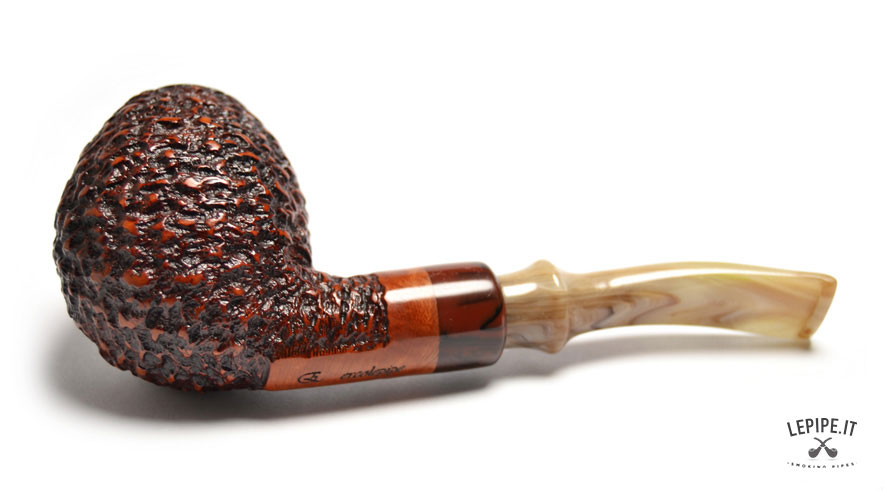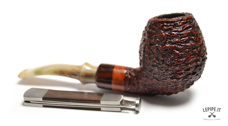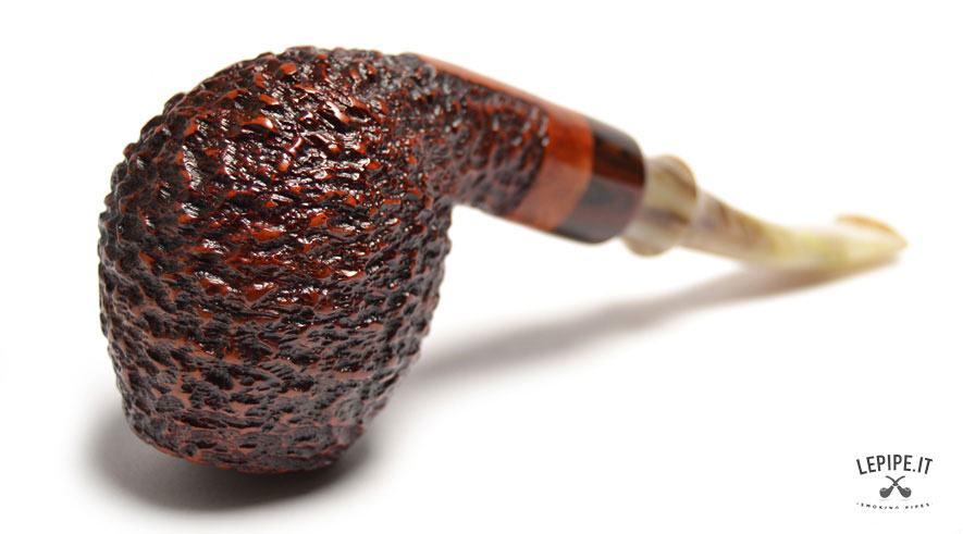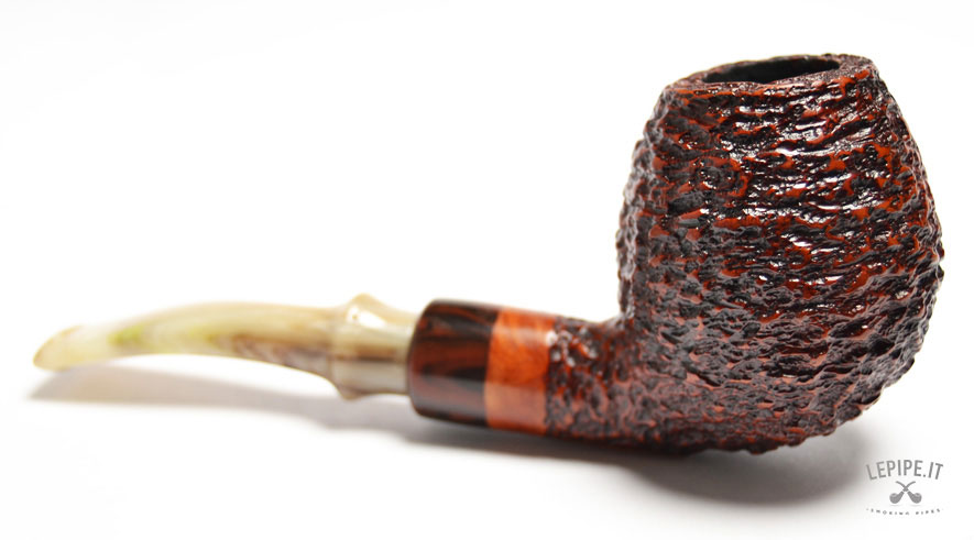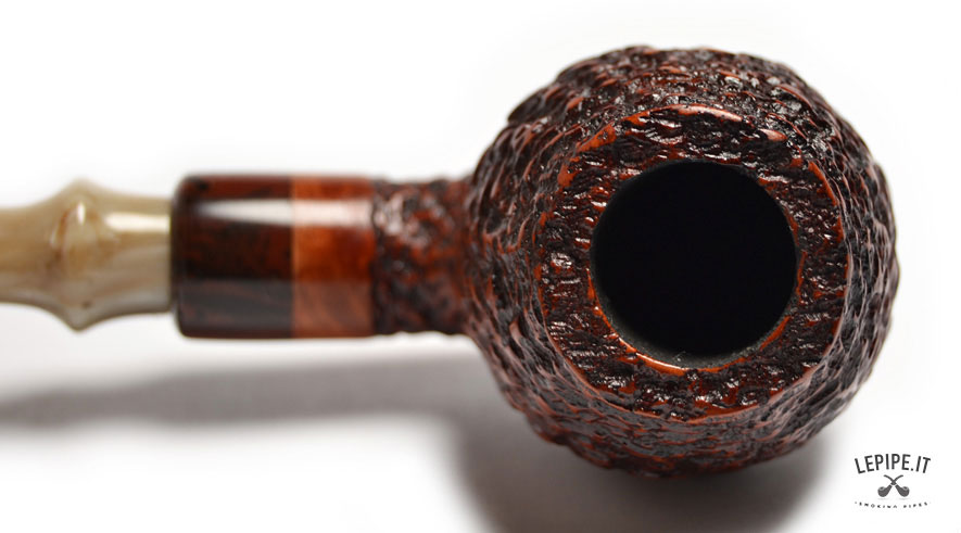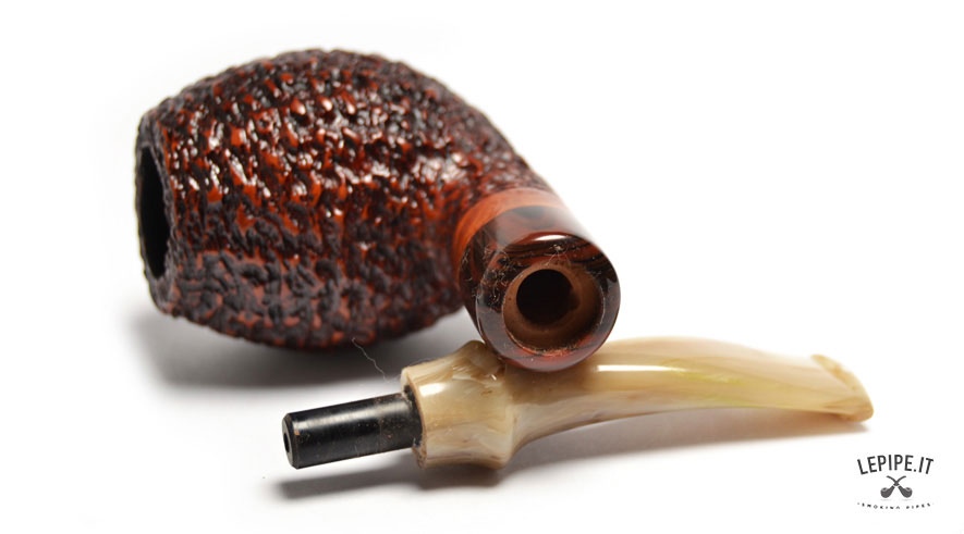 Pipa Bogni - Rusticata n. 76  Bocchino in metacrilato Senza filtro Rusticata Con altra elaborazione Diametro Interno: 20 mm. Diametro Esterno: 47 mm. Lunghezza: 151 mm. Altezza: 58 mm. Peso: 63 gr. Profondità: 45 mm.