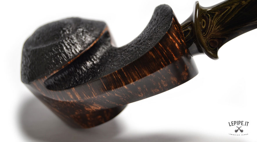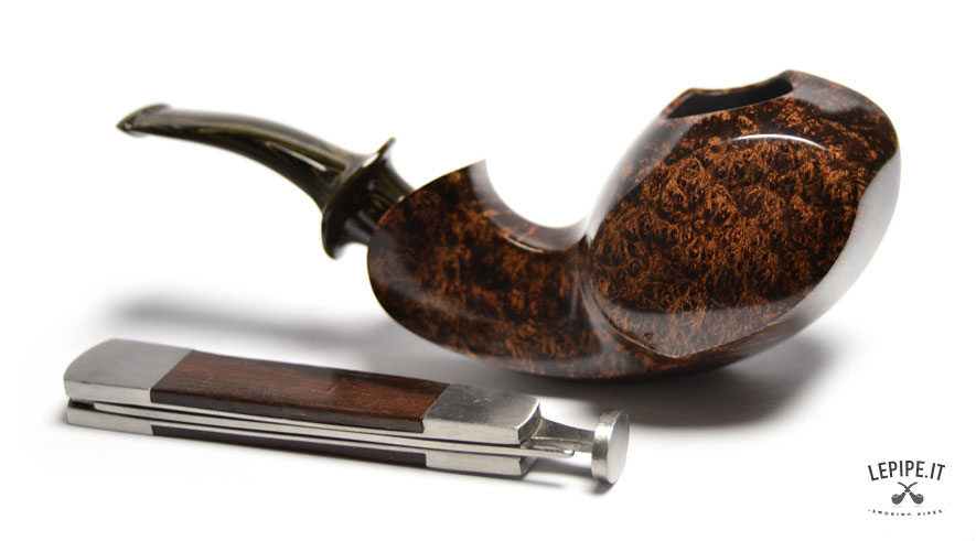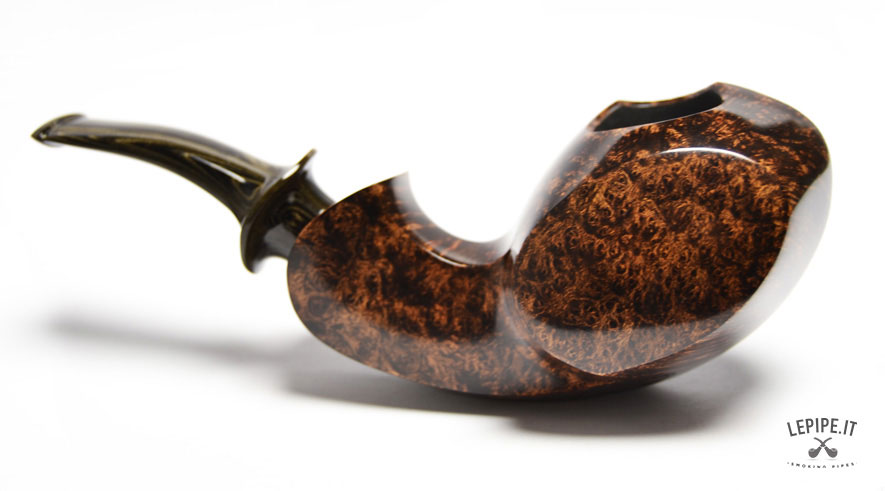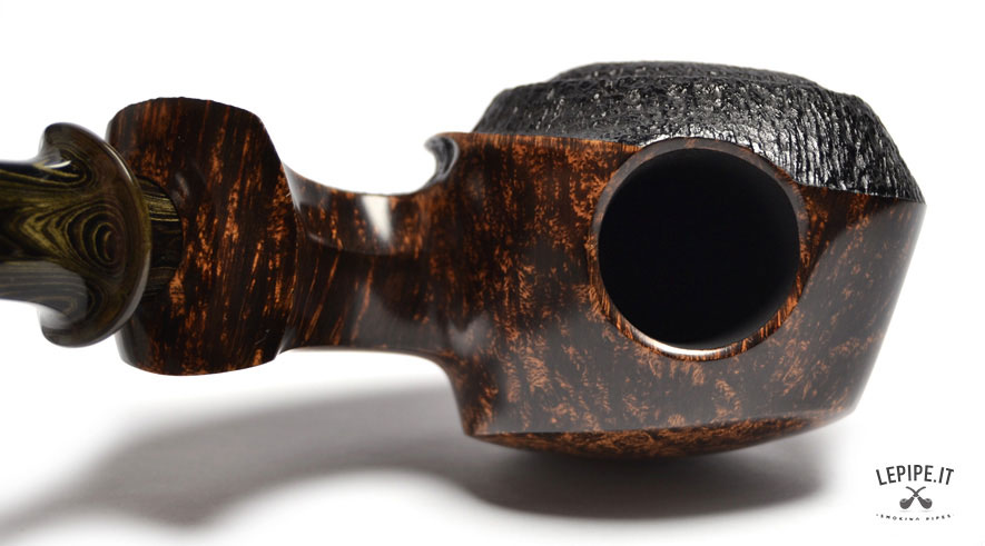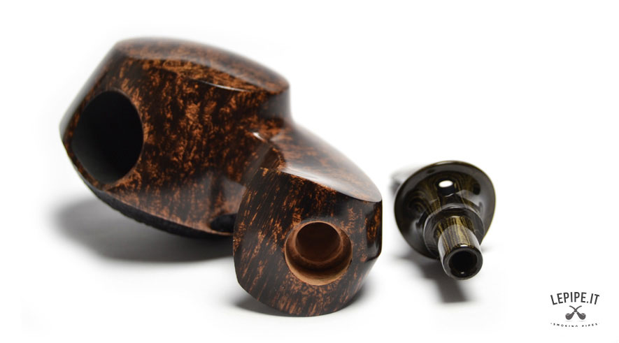 Pipa Garmash Mikhail - n. 4  Bocchino in ebanite Senza filtro Semi sabbiata Senza elaborazione Diametro Interno: 19 mm. Diametro Esterno: 41 mm. Lunghezza: 124 mm. Altezza: 42 mm. Peso: 56 gr. Profondità: 32 mm.