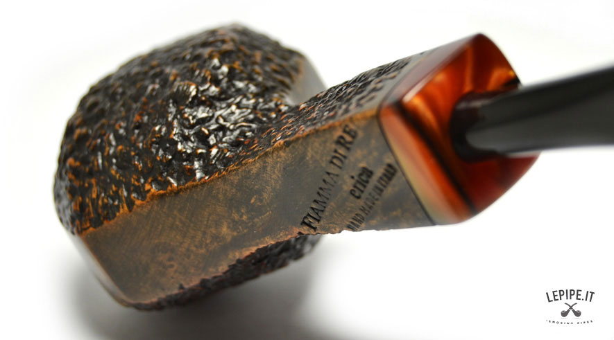 Pipa Fiamma di Re - Erica n. 16 Stand up Bocchino in metacrilato Senza filtro Rusticata Senza elaborazione Diametro Interno: 20 mm. Diametro Esterno: 37 mm. Lunghezza: 133 mm. Altezza: 45 mm. Peso: 46 gr. Profondità: 33 mm.