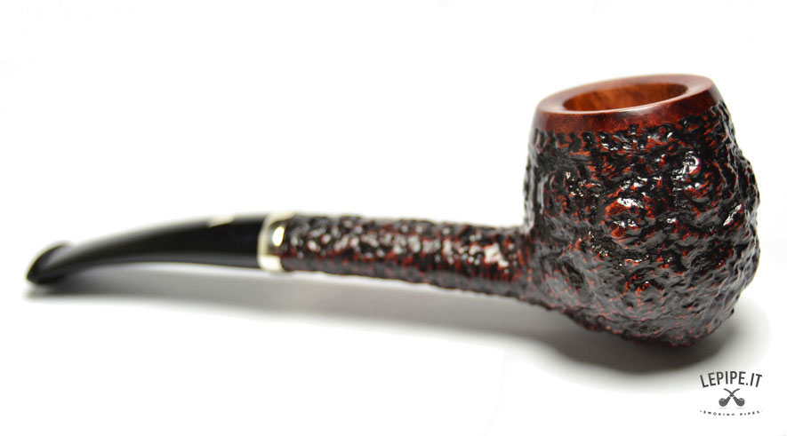 Pipa Fiamma di Re - Erica n. 19  Bocchino in metacrilato Senza filtro Rusticata Con altra elaborazione Diametro Interno: 19 mm. Diametro Esterno: 40 mm. Lunghezza: 137 mm. Altezza: 43 mm. Peso: 41 gr. Profondità: 32 mm.