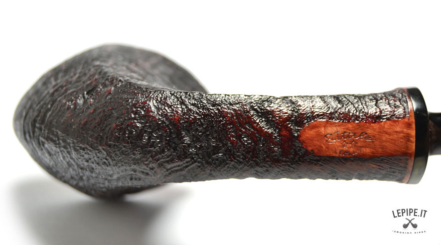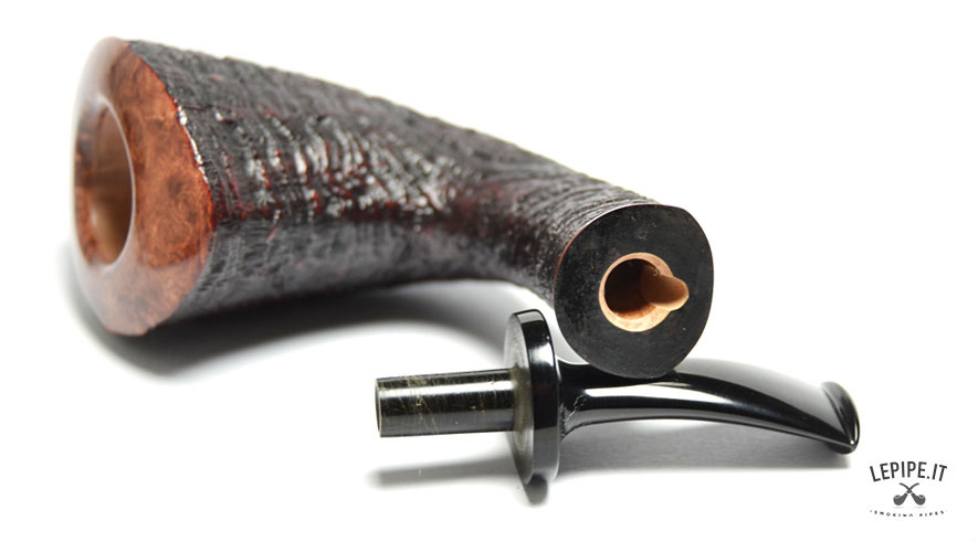 Pipa Vitale - n. 95  Bocchino in ebanite Senza filtro Sabbiata Senza elaborazione Diametro Interno: 21 mm. Diametro Esterno: 41 mm. Lunghezza: 142 mm. Altezza: 58 mm. Peso: 49 gr. Profondità: 47 mm.