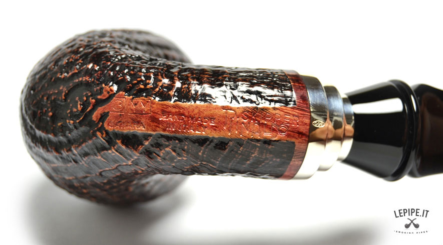 Pipa Rinaldo - Sahara n. 32 YY 3 Bocchino in metacrilato Senza filtro Sabbiata Con elaborazione in argento Diametro Interno: 21 mm. Diametro Esterno: 42 mm. Lunghezza: 133 mm. Altezza: 47 mm. Peso: 63 gr. Profondità: 40 mm.