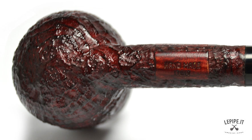 Pipa Regina Scarlatta - n. 46  Bocchino in ebanite Senza filtro Sabbiata Senza elaborazione Diametro Interno: 20 mm. Diametro Esterno: 36 mm. Lunghezza: 146 mm. Altezza: 47 mm. Peso: 36 gr. Profondità: 38 mm.