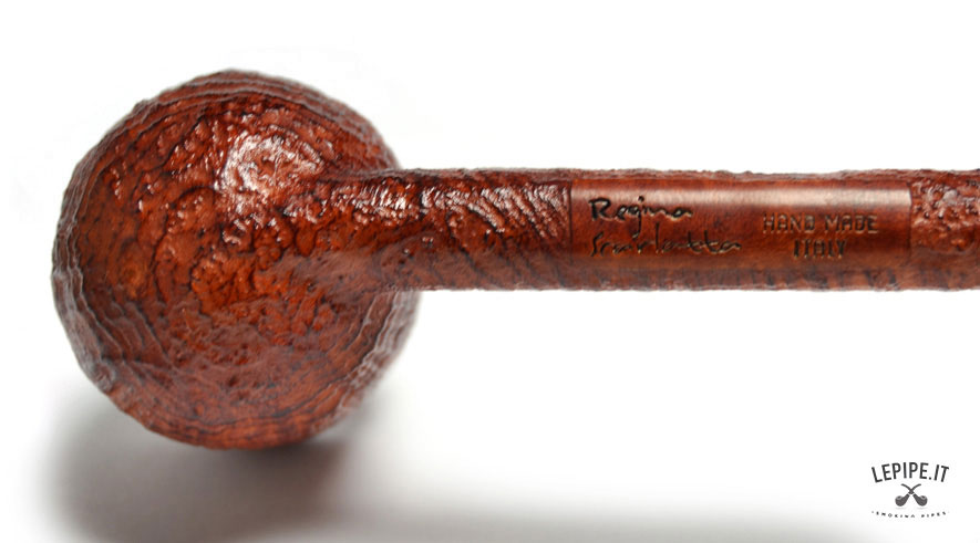 Pipa Regina Scarlatta - n. 48  Bocchino in ebanite Senza filtro Sabbiata Senza elaborazione Diametro Interno: 18 mm. Diametro Esterno: 35 mm. Lunghezza: 147 mm. Altezza: 47 mm. Peso: 31 gr. Profondità: 41 mm.