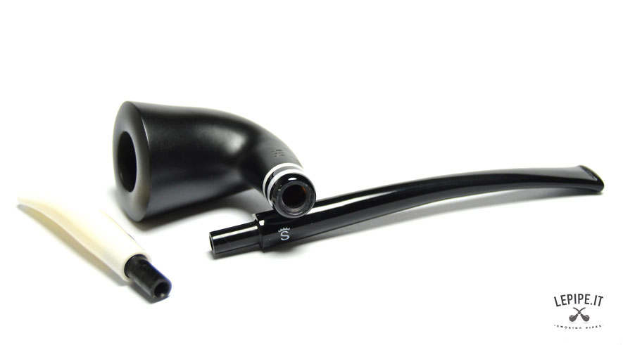 Pipa Stanwell - Black and White n. 6 Con doppio bocchino Bocchino in metacrilato Senza filtro Liscia Con altra elaborazione Diametro Interno: 20 mm. Diametro Esterno: 39 mm. Lunghezza: 145 mm. Altezza: 50 mm. Peso: 38 gr. Profondità: 40 mm.