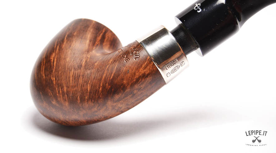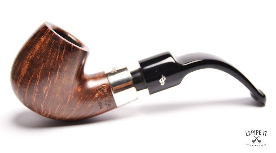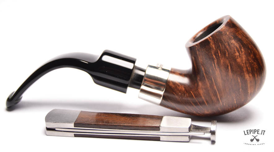 Pipa Peterson - Darwin De Luxe System n. 42 Medium - 20S - Bocchino P-Lip Bocchino in metacrilato Senza filtro Liscia Con elaborazione in argento Diametro Interno: 18 mm. Diametro Esterno: 39 mm. Lunghezza: 142 mm. Altezza: 43 mm. Peso: 49 gr. Profondità: 36 mm.