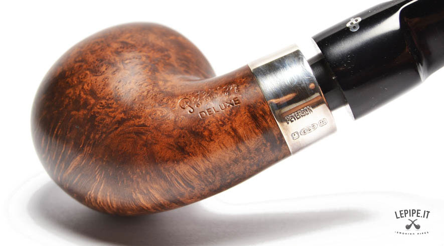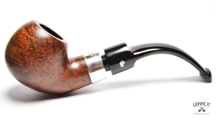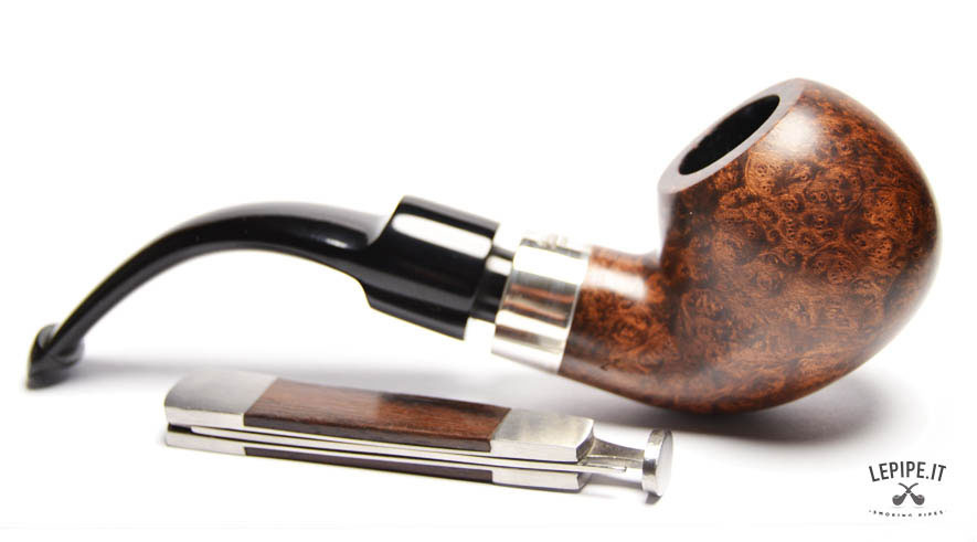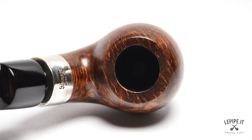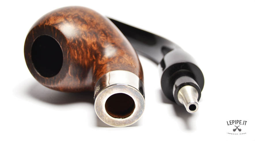 Pipa Peterson - Darwin De Luxe System n. 43 Large - 2,5 - Bocchino P-Lip Bocchino in metacrilato Senza filtro Liscia Con elaborazione in argento Diametro Interno: 21 mm. Diametro Esterno: 44 mm. Lunghezza: 162 mm. Altezza: 42 mm. Peso: 73 gr. Profondità: 35 mm.