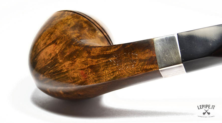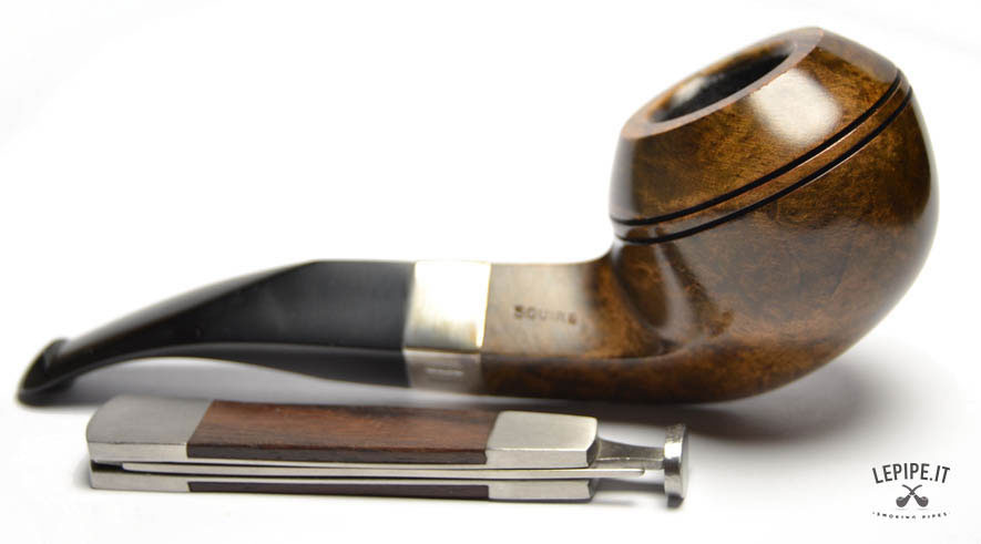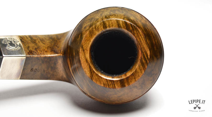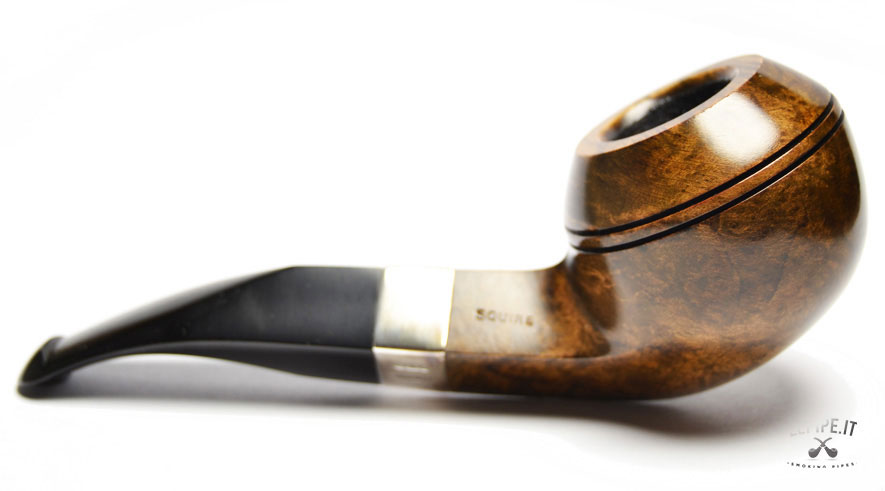 Pipa Peterson - S.H. Dark n.  40 Squire - Bocchino P-Lip Bocchino in ebanite Senza filtro Liscia Con elaborazione in argento Diametro Interno: 21 mm. Diametro Esterno: 48 mm. Lunghezza: 145 mm. Altezza: 48 mm. Peso: 62 gr. Profondità: 36 mm.