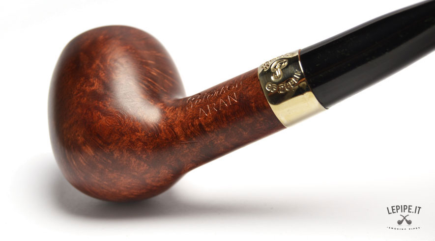 Pipa Peterson - Aran n. 27 87 Bocchino in ebanite Senza filtro Liscia Con altra elaborazione Diametro Interno: 19 mm. Diametro Esterno: 38 mm. Lunghezza: 149 mm. Altezza: 44 mm. Peso: 47 gr. Profondità: 37 mm.